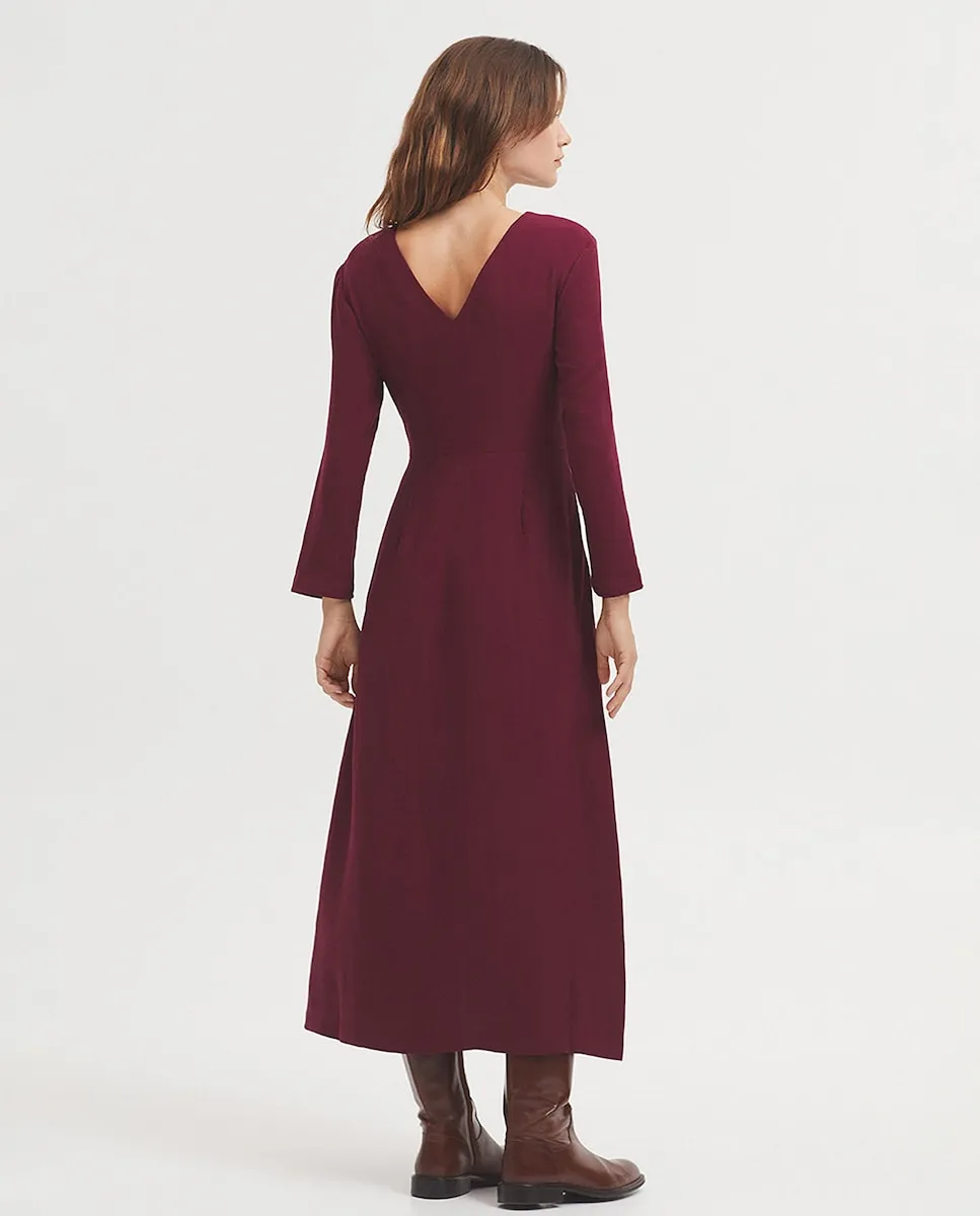 Прямое миди-платье с бантом и вырезом-лодочкой Nice Things, бордовый