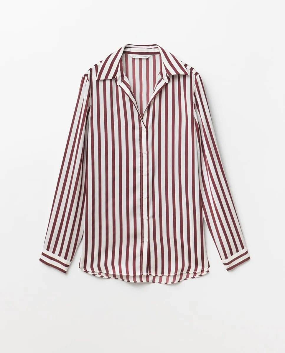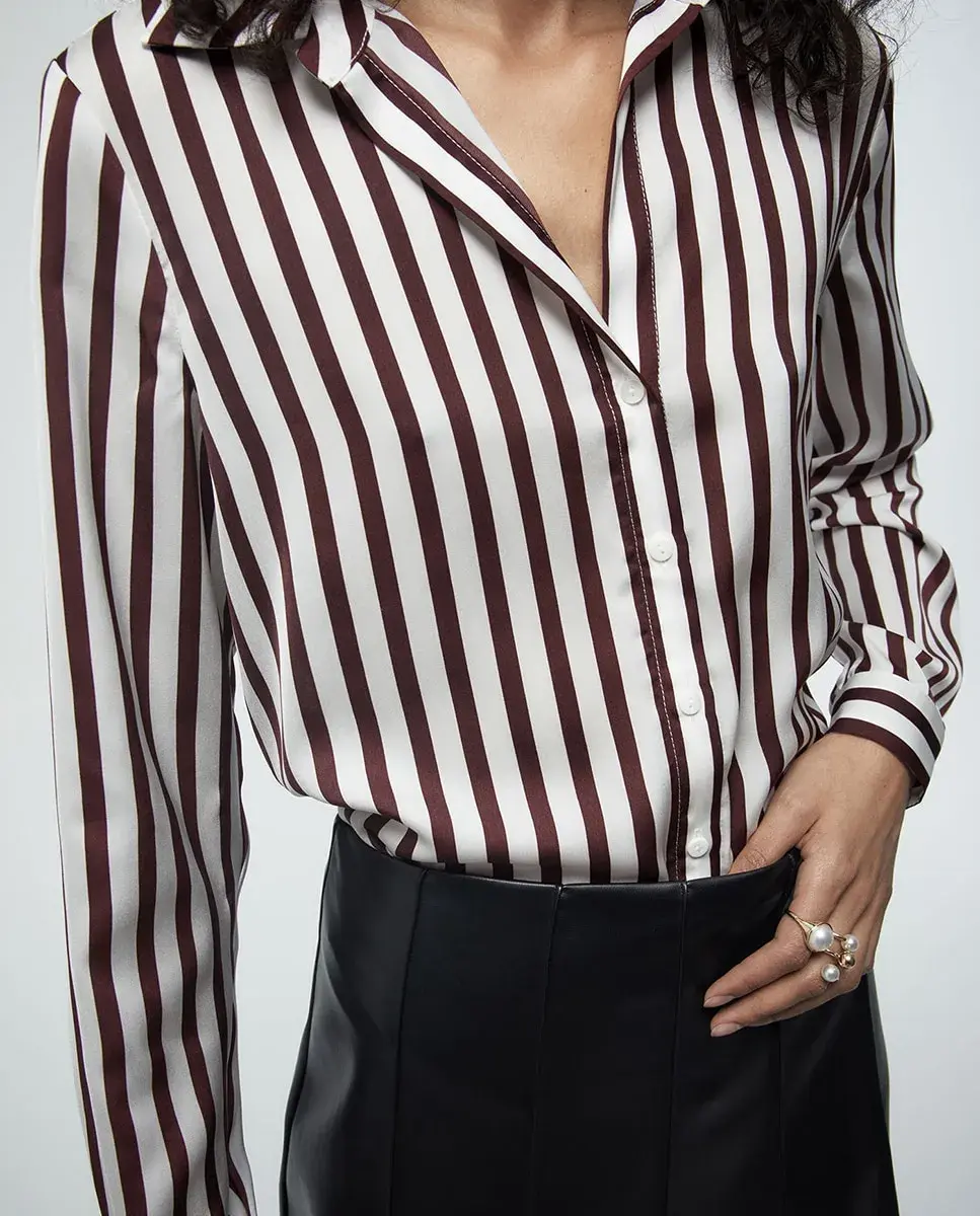 Сатиновая рубашка в полоску с кнопочной застежкой
