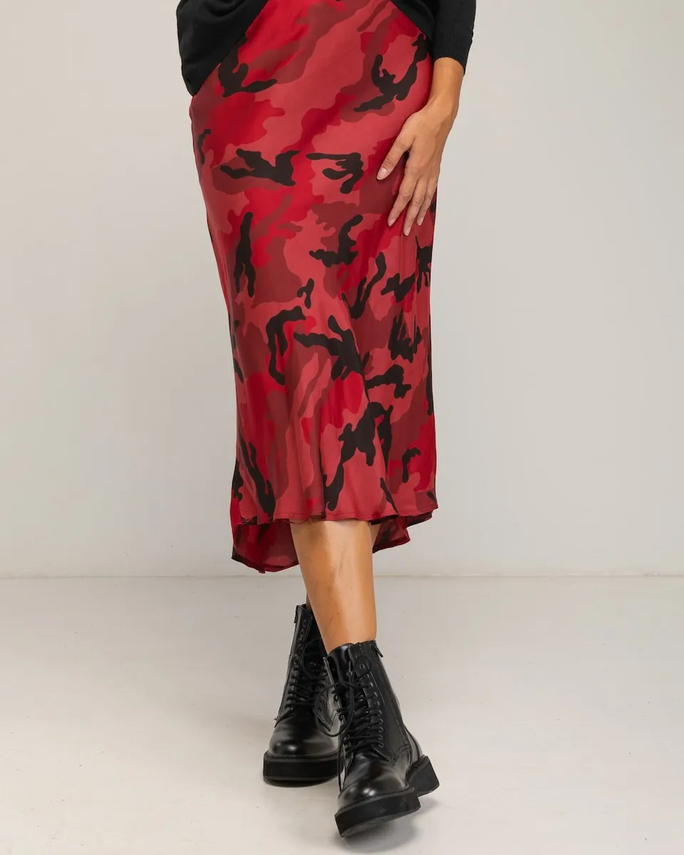 Миди-юбка с принтом из шелка Tantra, бордовый