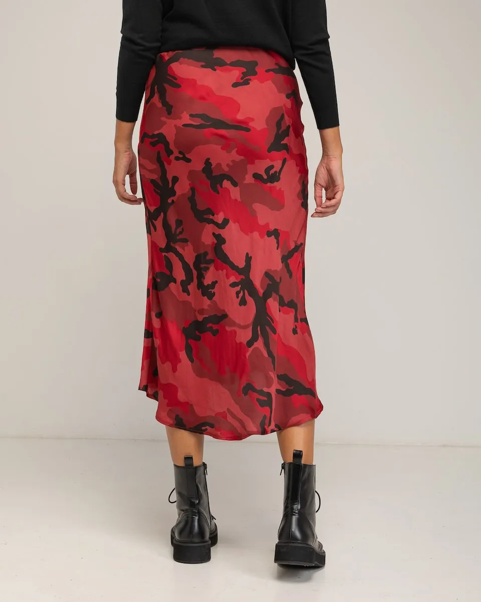 Миди-юбка с принтом из шелка, с расклешенным кроем и эластичным поясом.