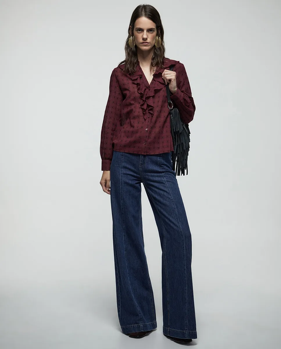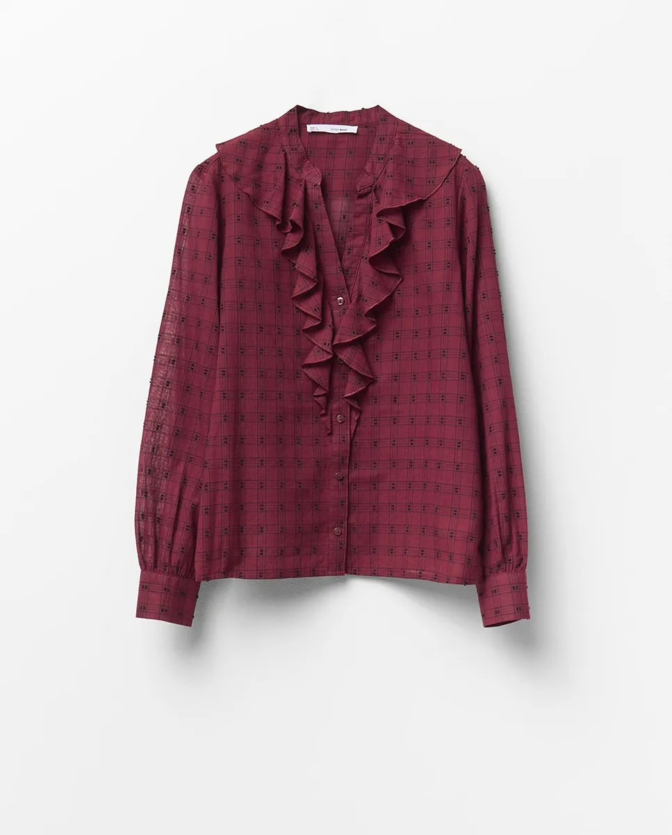 Блузка с воланами из добби Sfera, бордовый
