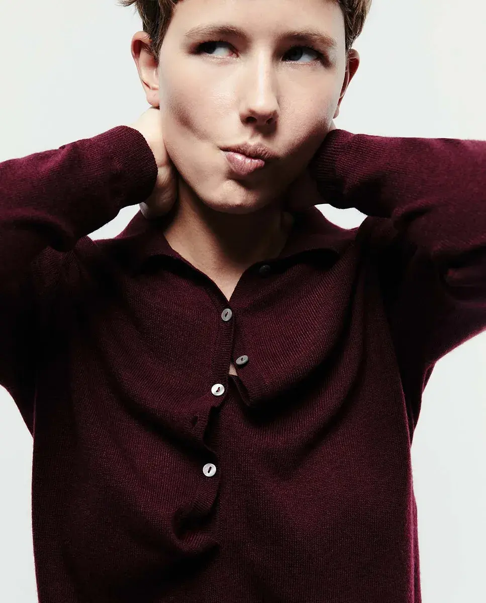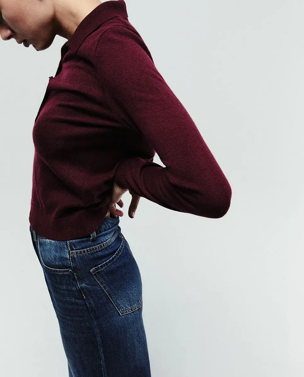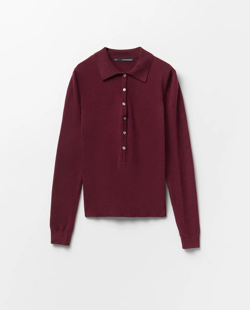 Однотонный джемпер с длинными рукавами и воротником-поло на пуговицах