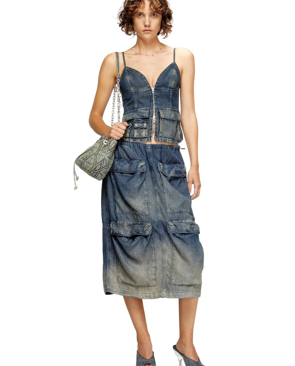 Юбка миди DIESEL из денима с передними карманами Diesel, синий