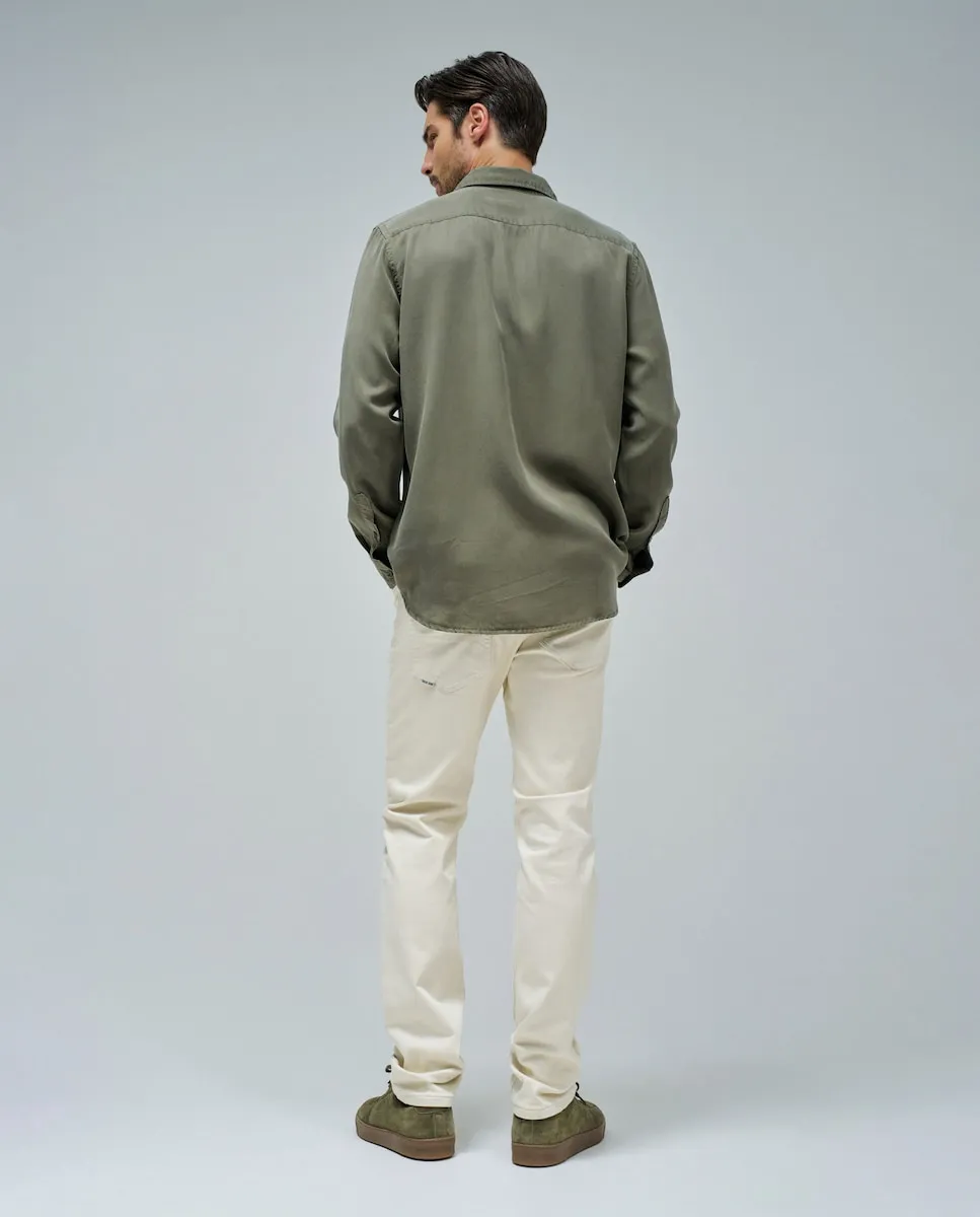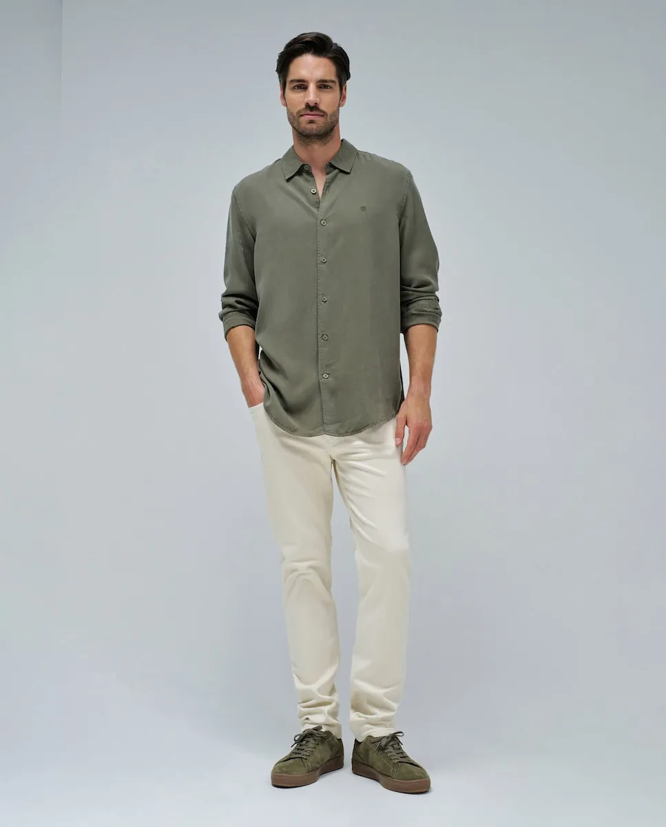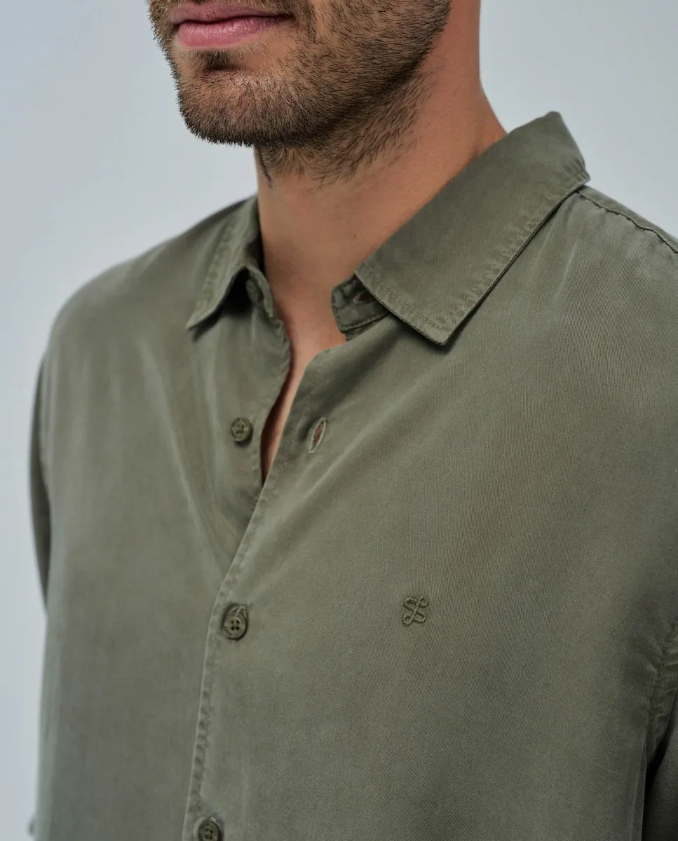 Необходимая вещь для повседневного и элегантного образа. Сшитая из легкого денима, эта рубашка обеспечивает комфорт и вне времени стиль. Прямой крой гарантирует сбалансированную посадку, а длинные рукава и воротник с лацканами придают классический вид. Планка с пуговицами спереди добавляет практичности, а логотип на груди придает изделию выразительную деталь.- Рубашка из легкого денима- Зеленый цвет- Прямой крой- Длинные рукава- Воротник с лацканами- Планка с пуговицами спереди- Логотип на грудиДля справки: модель на фото ростом 1,87 м и носит размер L.