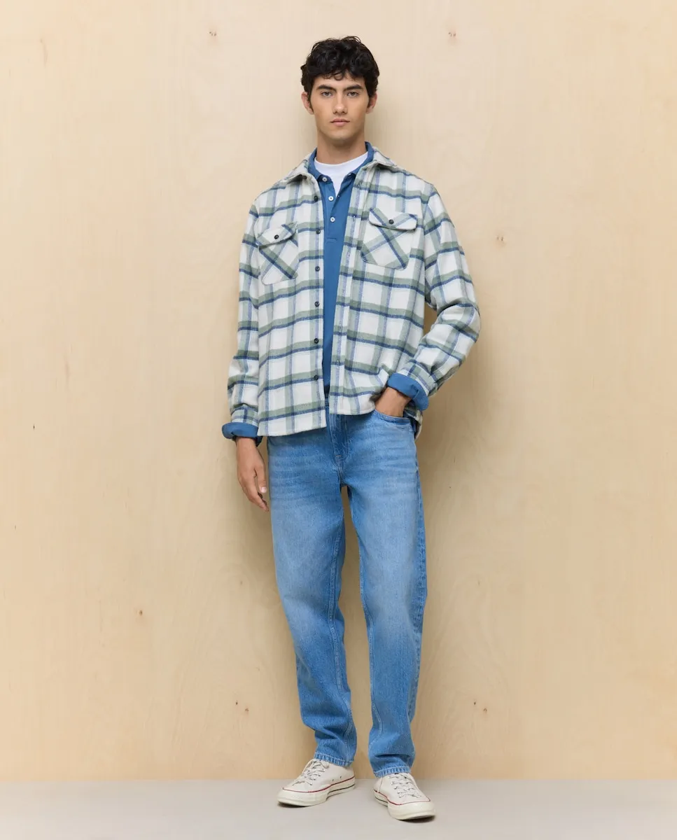 Рубашка мужская с длинным рукавом в клетку, с отложным воротником, прямой крой