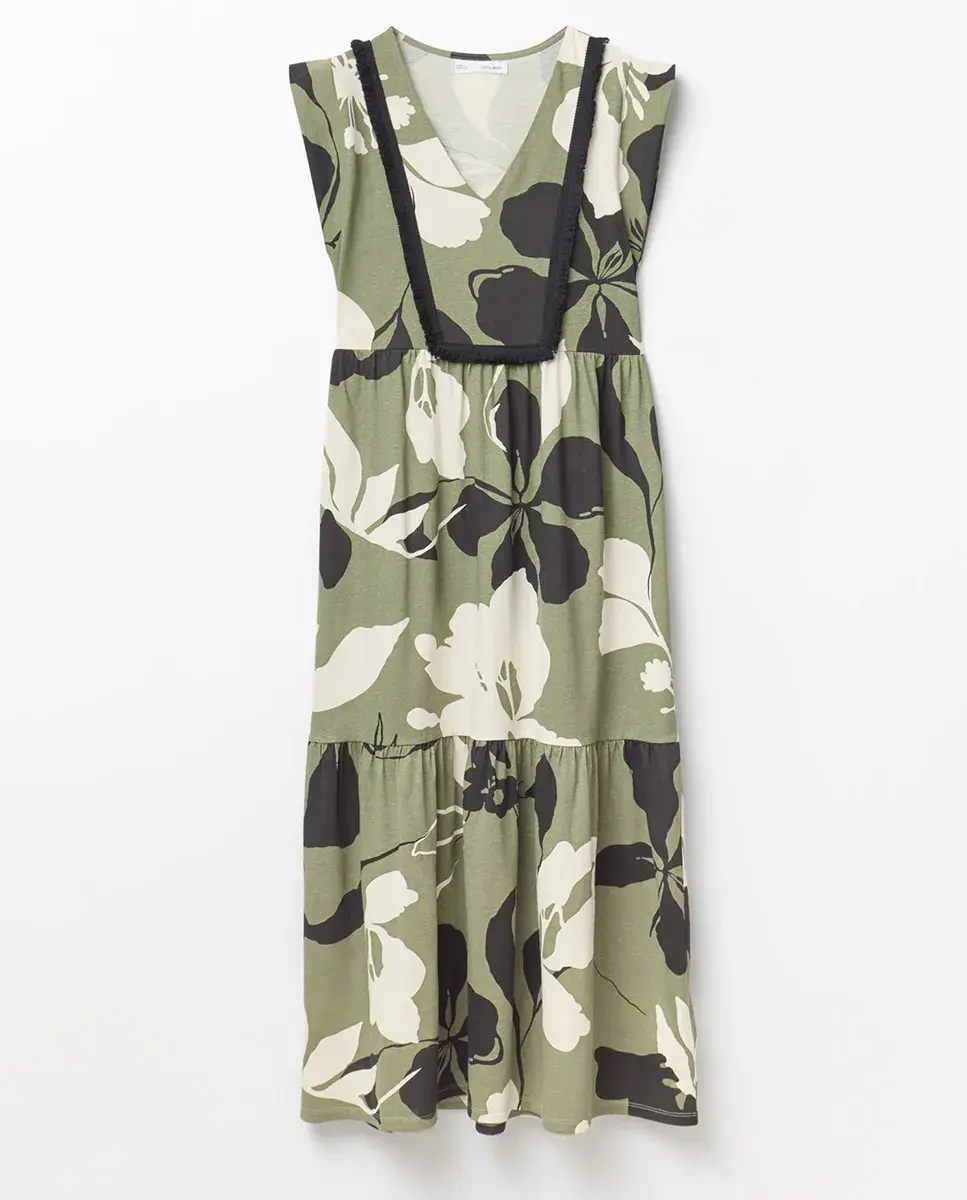 Платье с панелями и бахромой Sfera, хаки
