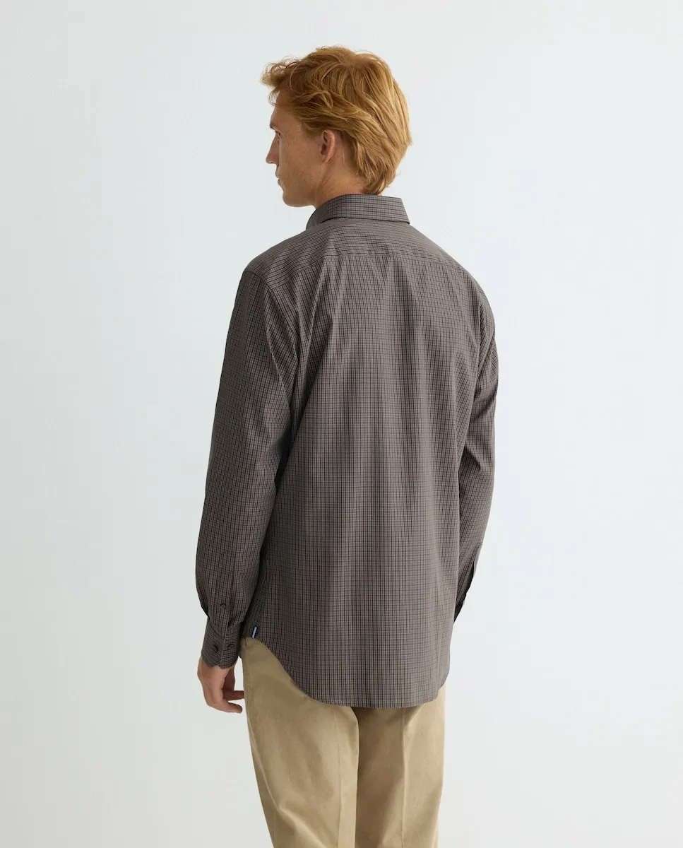 Футболка спортивная с длинным рукавом регулярного кроя 100% хлопок NON IRON поплин в мелкую клетку, воротник с кнопкой, манжета с острием, с карманом