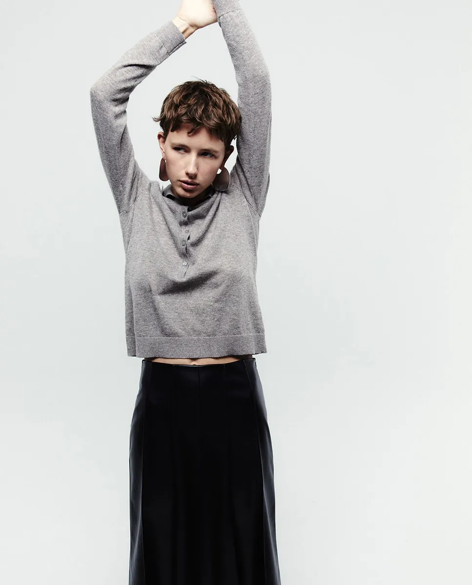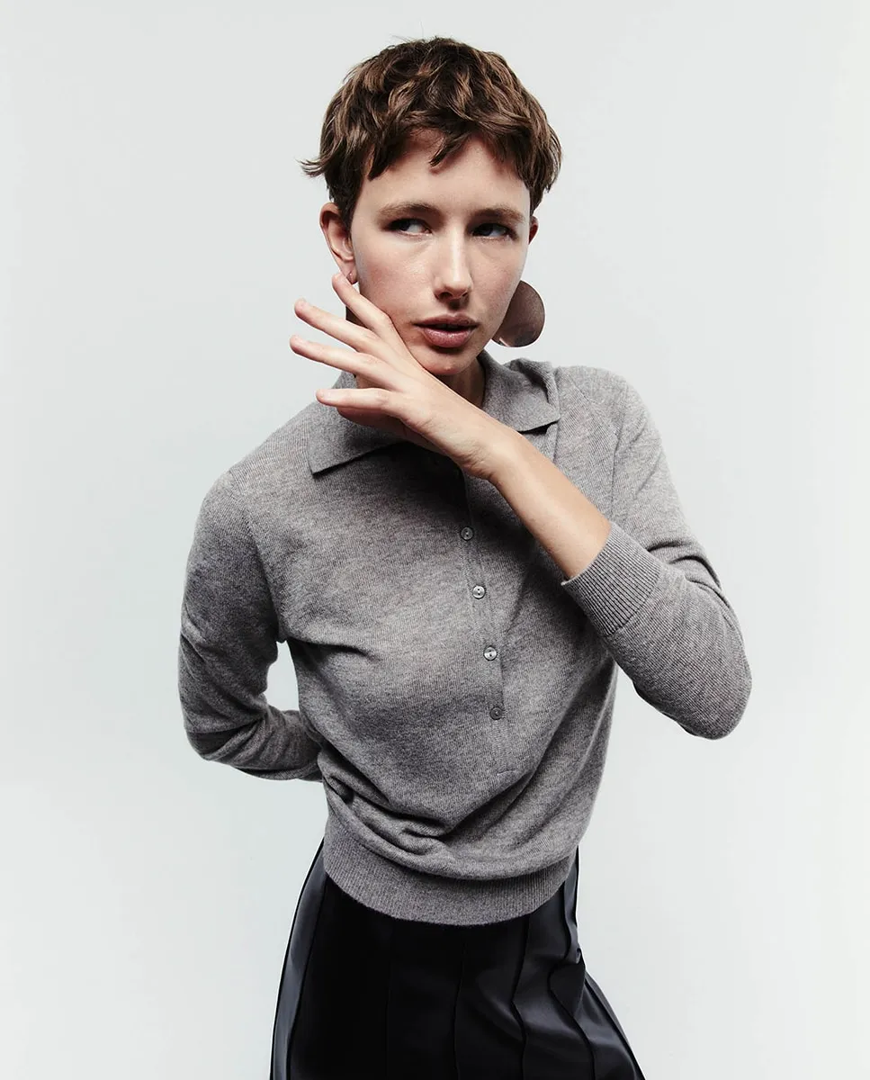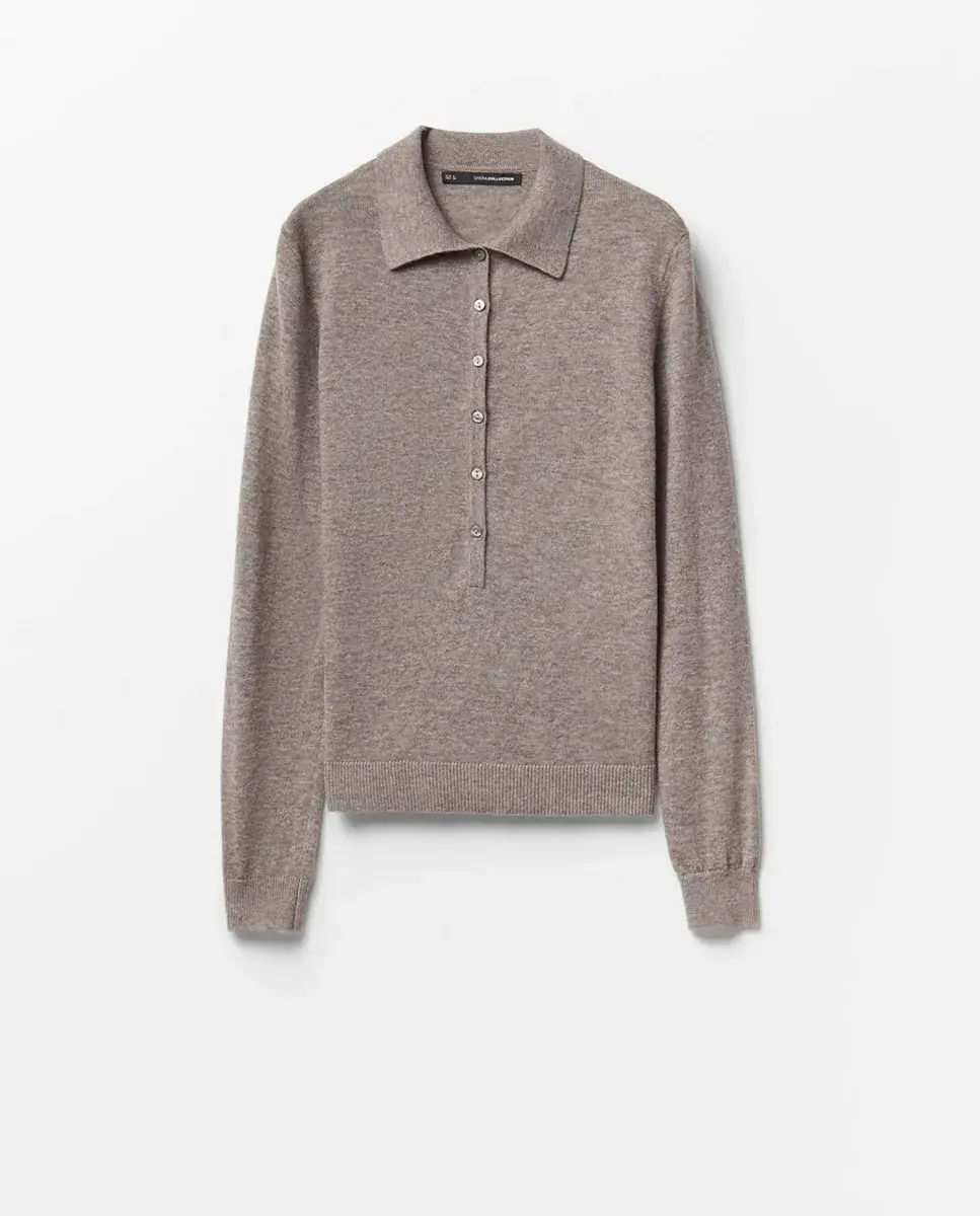 Однотонный джемпер с длинными рукавами и воротником-поло на пуговицах