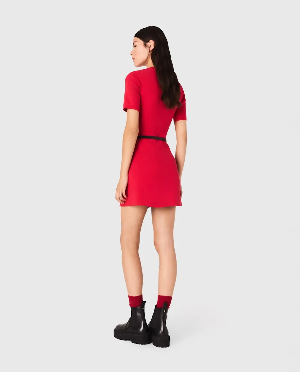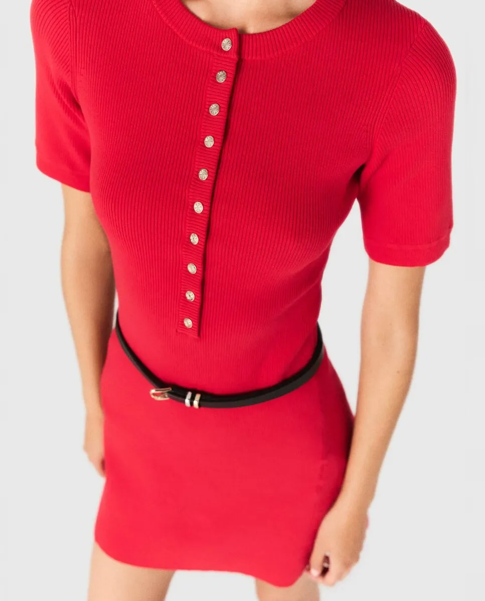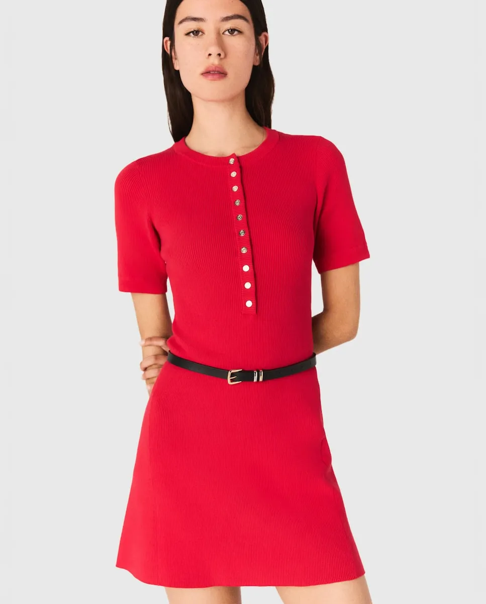 Короткое платье из вязаного трикотажа в рубчик. Круглый ворот с пуговицами. В стиле casual chic, вдохновленном весной в движении, коллекция переосмысливает базовые вещи из облегающего трикотажа. Это короткое платье из трикотажного материала в рубчик естественно подчеркивает силуэт за счет своего облегающего кроя, украшенного воротником с пуговицами Clover. Платье подходит для аксессуаров: его можно носить с платком на талии, большой сумкой и кожаными ботильонами.