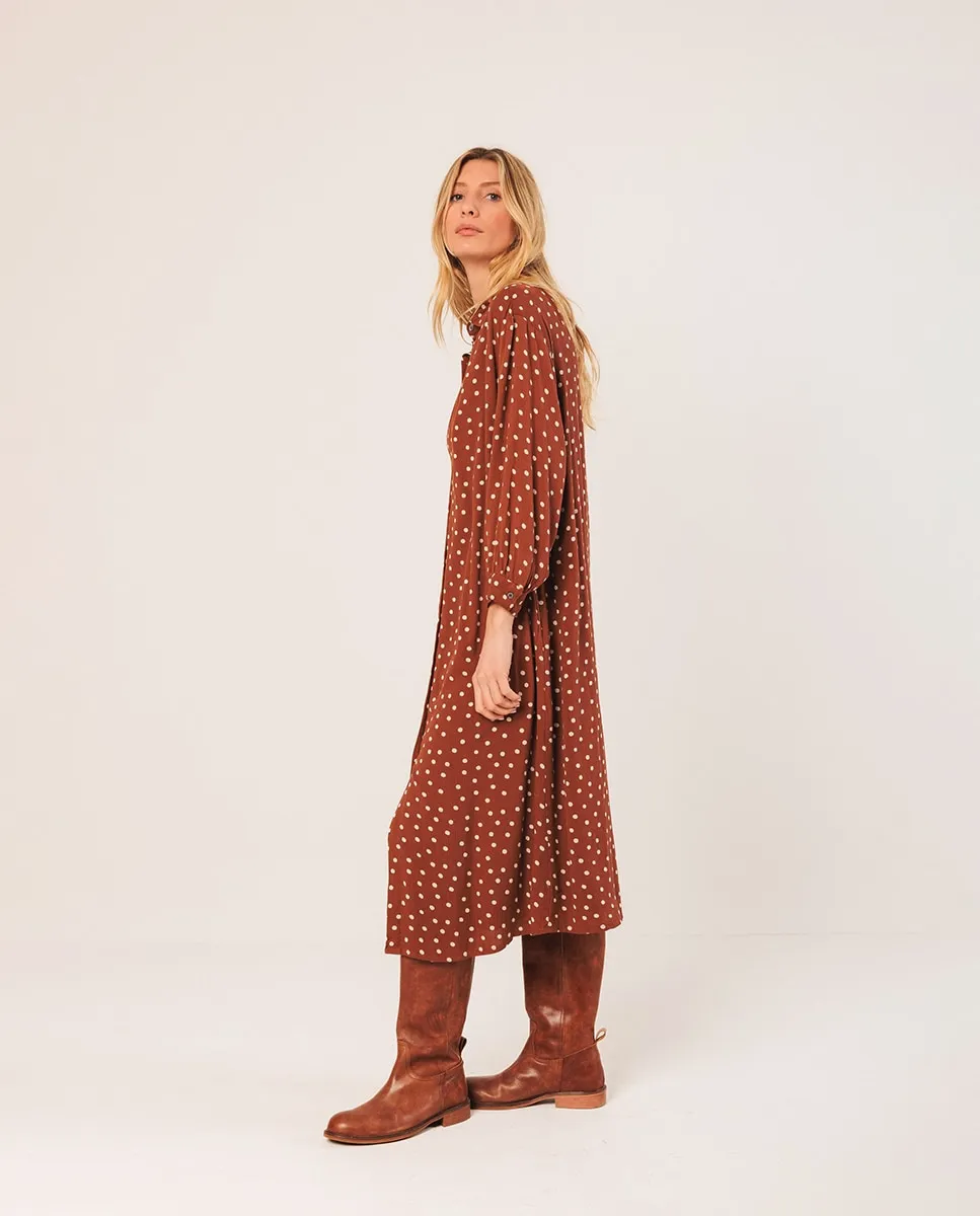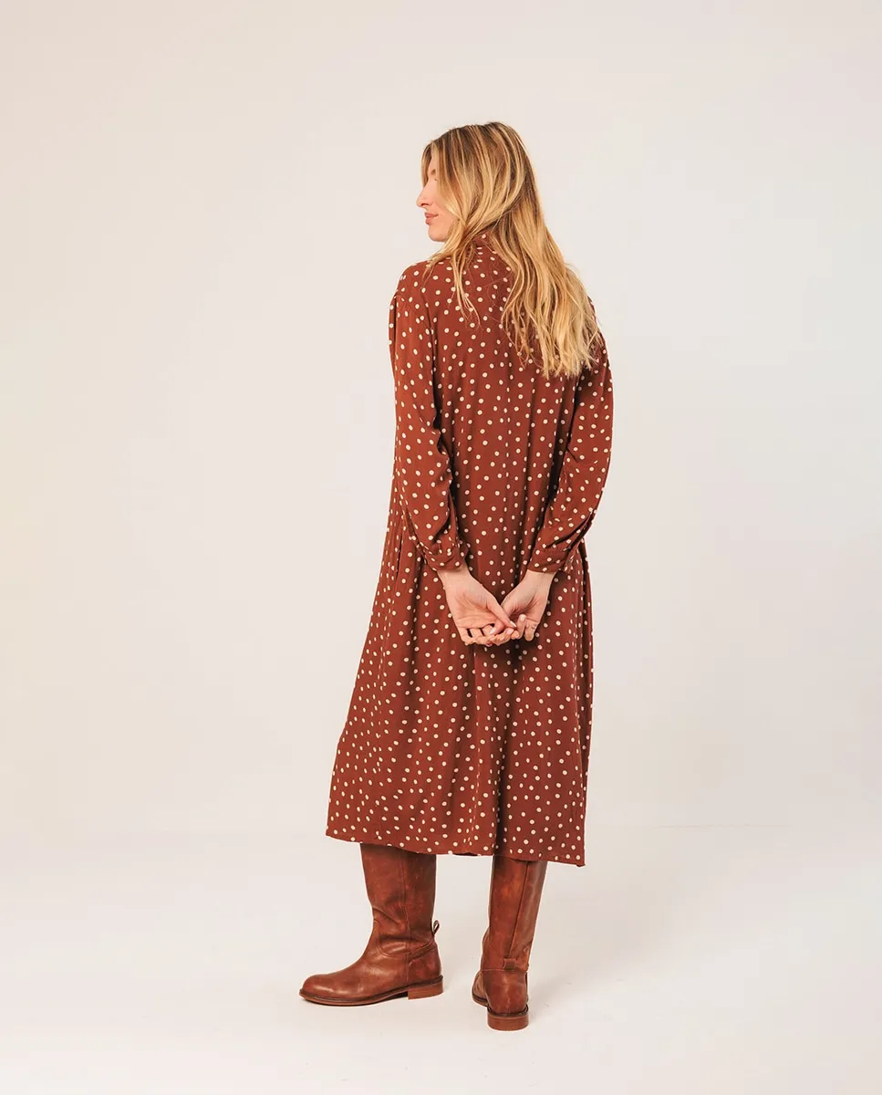 Миди-платье с длинными рукавами и воротником-рубашкой Indi & Cold, бордовый