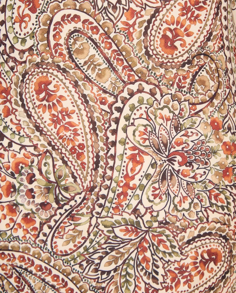 Платье с принтом, круглый вырез, рукава 3/4.