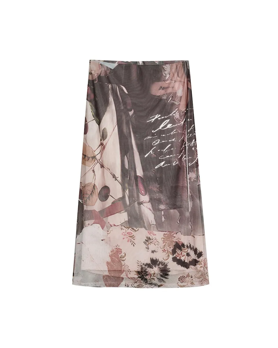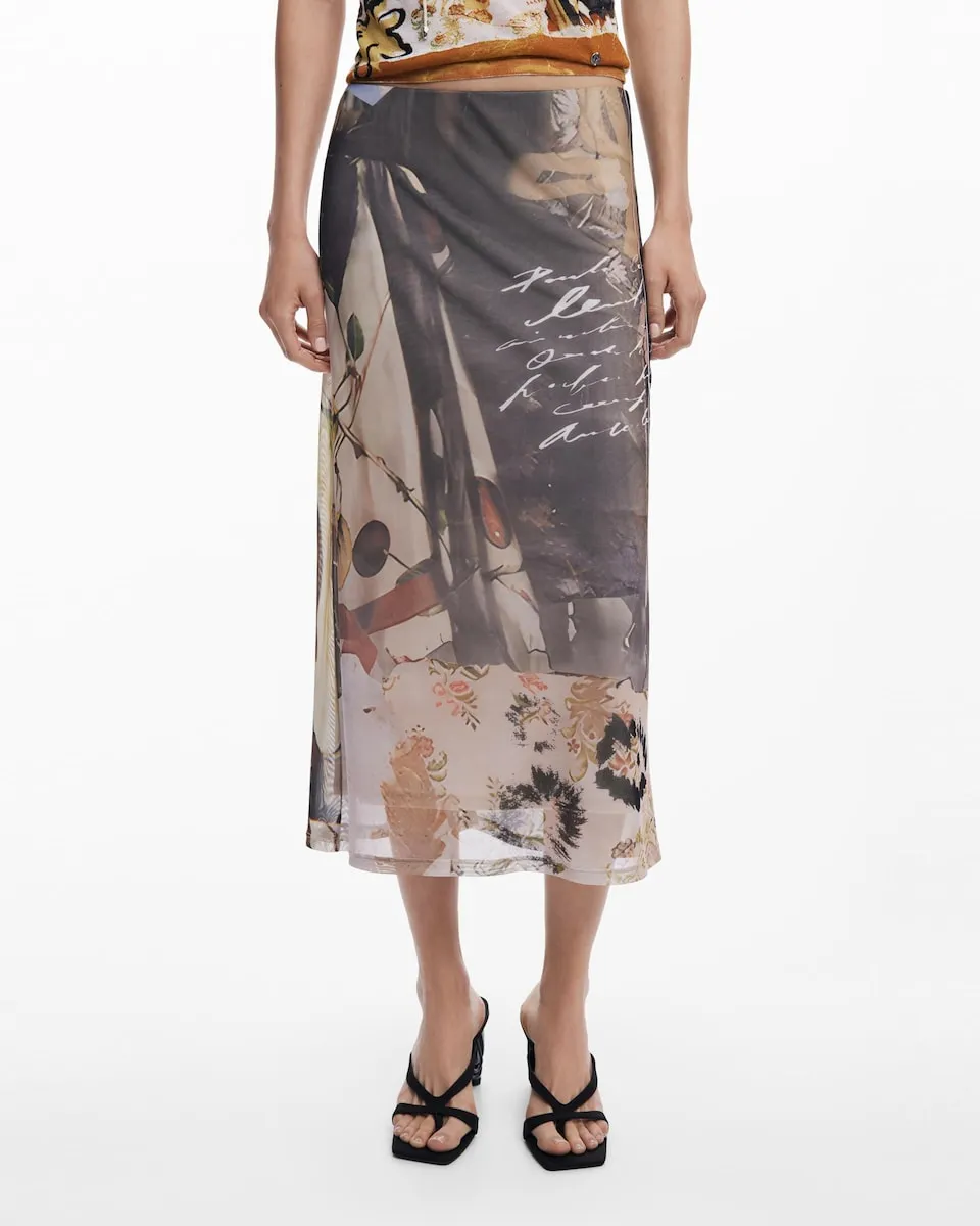 Юбка миди до колена из тюля с эластичным поясом и принтом в стиле коллажа. Артистический принт. Крой: обычный. Длина: миди. Эластичный пояс. Переработанный полиэстер.