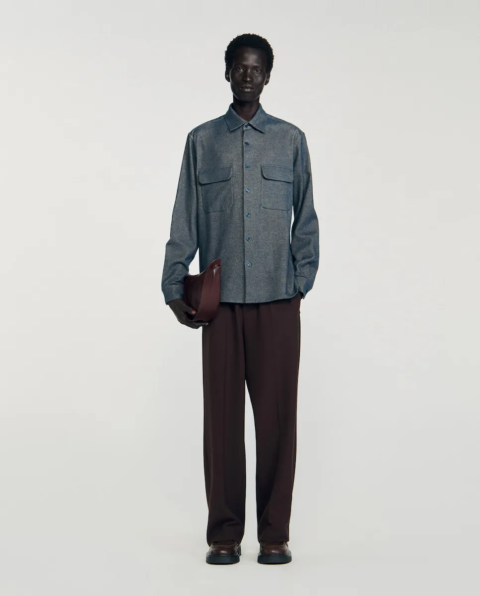 Фланелевая рубашка с французским воротником, длинными рукавами, застежкой на пуговицы и нагрудными карманами с клапанами. Мужская фланелевая рубашка Sandro. Французский воротник. Свободный крой. Длинные рукава. Застежка на пуговицы. Нагрудные карманы с клапанами.