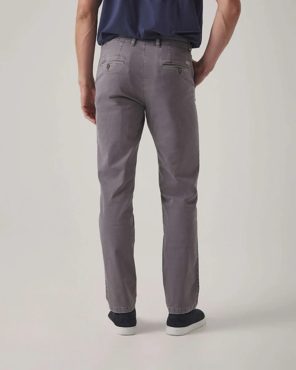 Классические чино с двойной складкой, выполненные из хлопка. Боковые и задние карманы. Вышитый логотип на задней части. Немного заужены, но удобные. Стильная посадка и ширина штанины, сужение в области щиколотки.