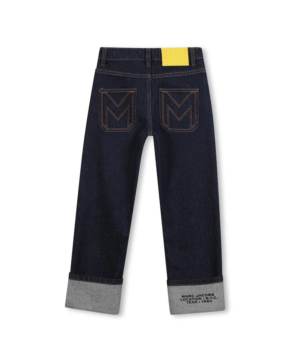 Эти современные джинсы оснащены силиконовым ярлыком на задней части и принтом MARC JACOBS на манжете ноги, создавая одновременно стильный и оригинальный предмет одежды. Швы в форме "М" на задних карманах добавляют нотку изысканности. Идеальная модель для самых маленьких, которым нравится сочетать удобство, качество и продуманные детали в своем повседневном стиле.
