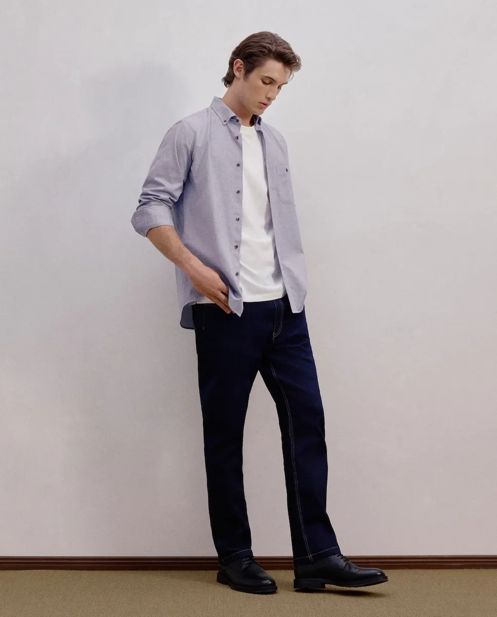 Мужская рубашка с длинным рукавом из ткани виллела с узором «гусиная лапка», классическая.