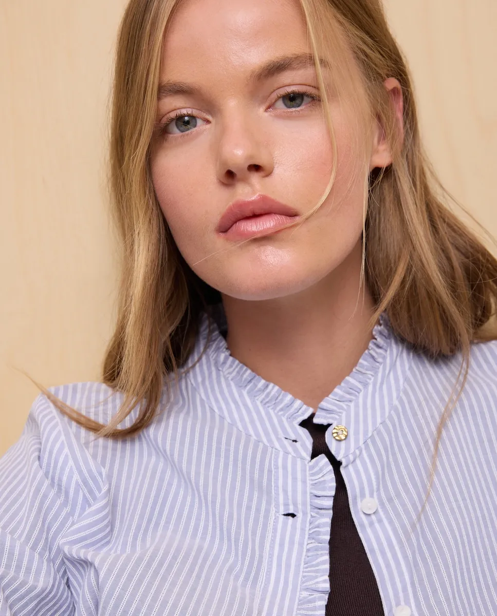 Рубашка с длинными рукавами и викторианским воротником.