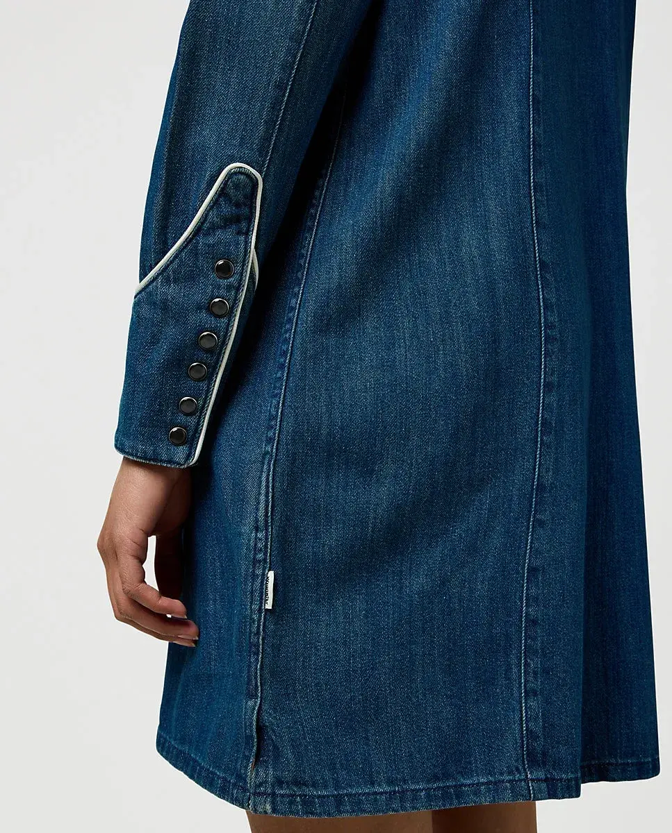 Платье-рубашка с кантом Piped имеет кокетку в западном стиле и кнопки-застежки. Кроме того, оно мягкое и легко сочетается для создания повседневного или более стильного образа.