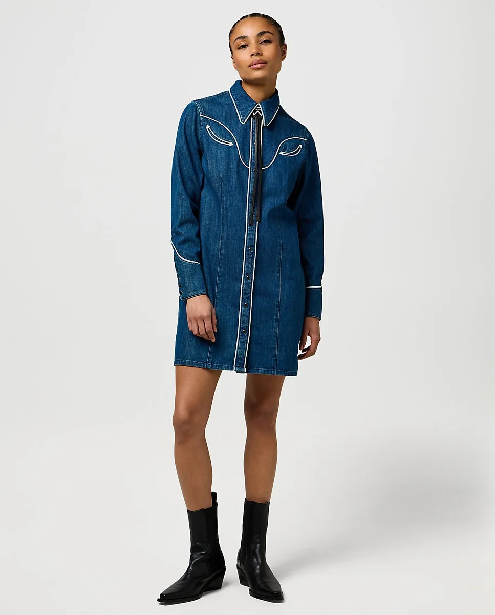 Джинсовое платье-рубашка с вестерн-деталями Wrangler, синий