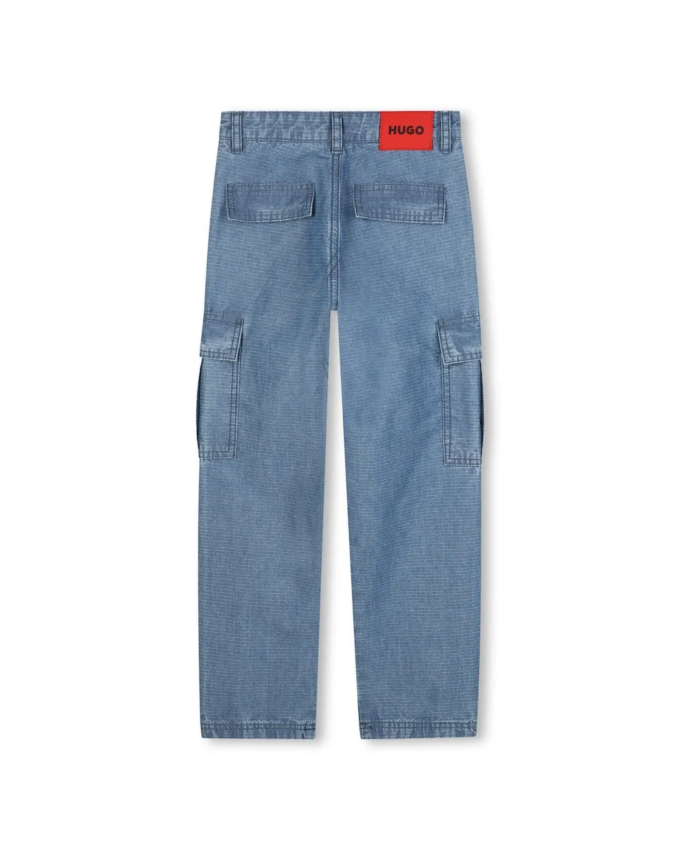 Эти джинсы бренда HUGO с свободным кроем обеспечивают вам комфорт и стиль. Легкий и прочный хлопковый рипстоп станет вашим надежным спутником в повседневной жизни. С четырьмя удобными карманами, двумя карманами с клапанами по бокам и элегантными разрезами, эта модель выделяется своими функциональными деталями. Лейбл из резины с логотипом бренда на задней части и металлическая пластина с логотипом на боку добавляют элегантные и современные акценты.