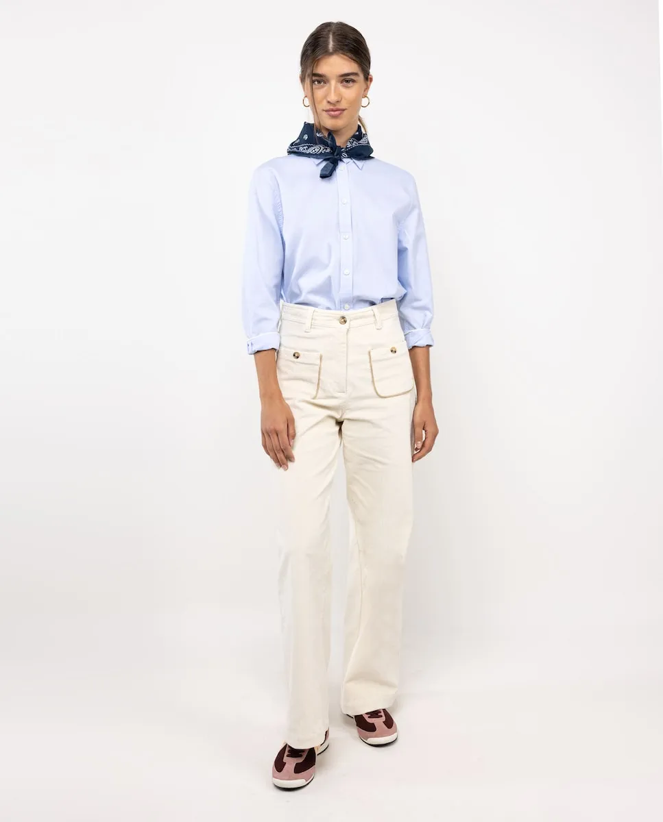 Женская рубашка из 100% хлопка. Классический крой Regular Fit, классический воротник и застежка на пуговицы. Длинные рукава с простыми манжетами и вышитый логотип на груди.