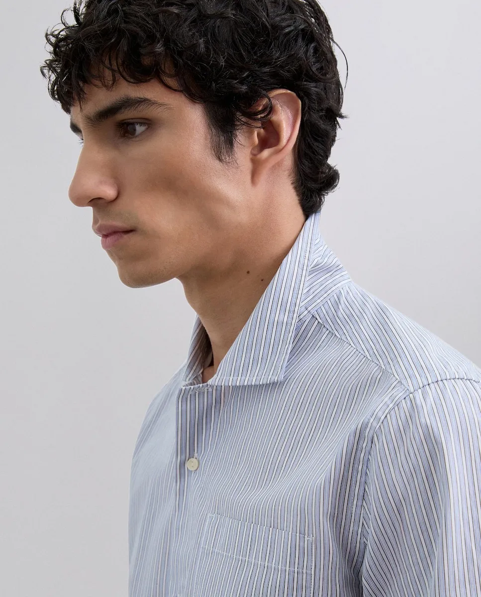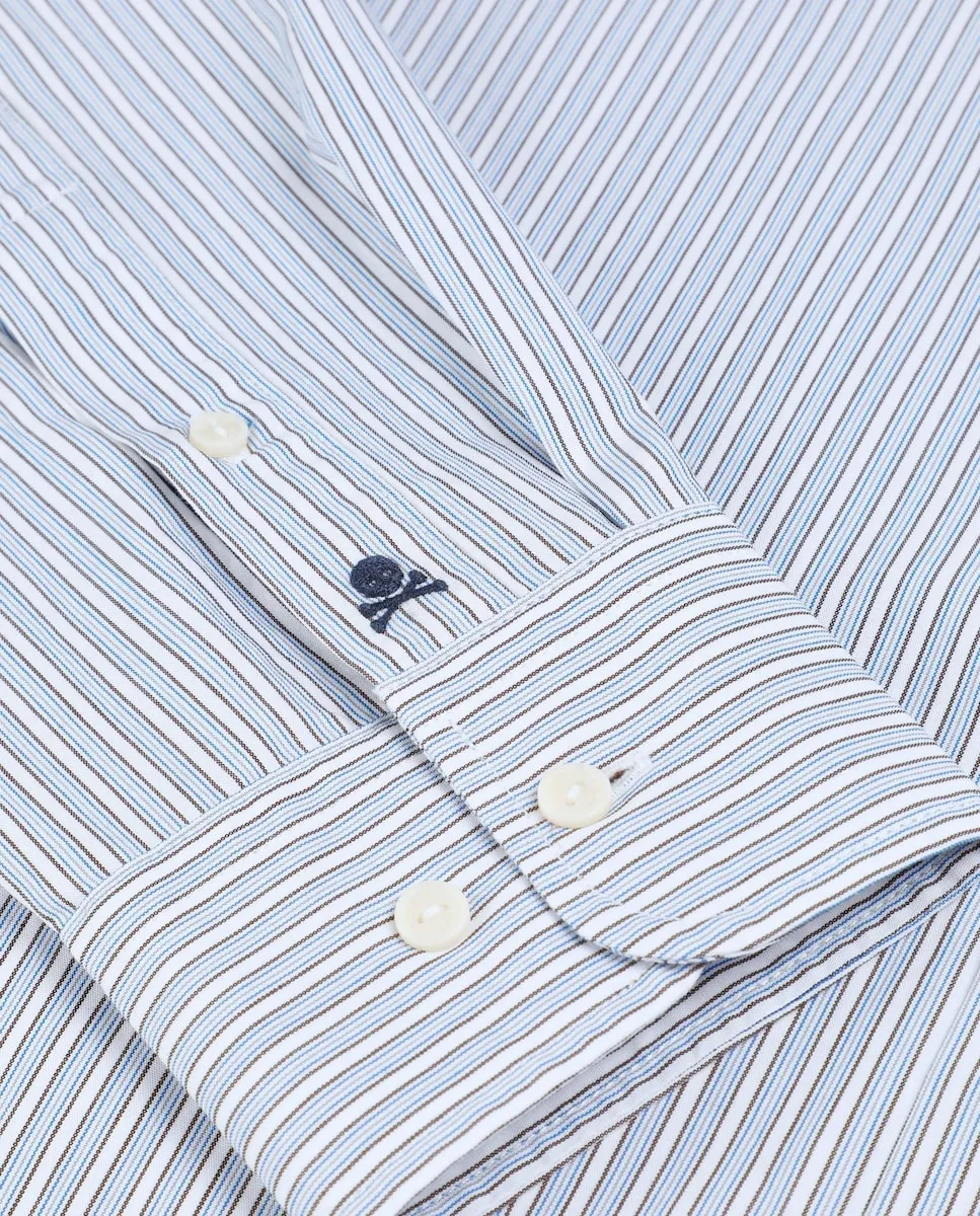 Рубашка выполнена из 100% хлопка BCI. Длинный рукав. Полосатый рисунок. Нагрудный карман спереди. Деталь в виде вышитого черепа контрастной нитью на манжете.