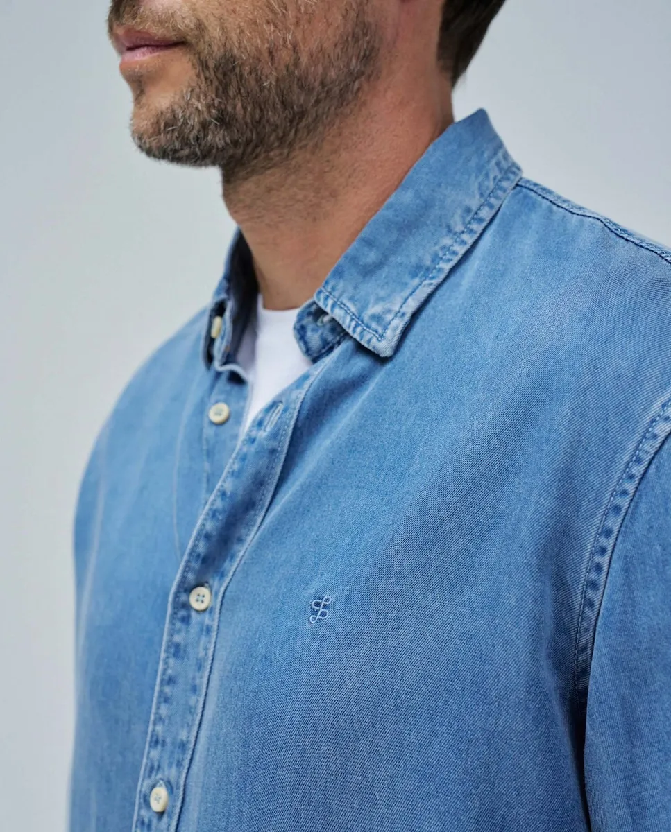 Необходимая вещь для повседневного и элегантного образа. Сшитая из легкого денима, эта рубашка обеспечивает комфорт и вечный стиль. Классический крой гарантирует сбалансированную посадку, а длинные рукава и отложной воротник добавляют классический штрих. Передняя застежка на пуговицы обеспечивает практичность, а логотип на груди придает вещи характерную деталь. - Рубашка из легкого денима - Синий цвет - Классический крой - Длинные рукава - Отложной воротник - Передняя застежка на пуговицы - Логотип на груди Для справки: рост модели 1,86 м, на ней размер L.