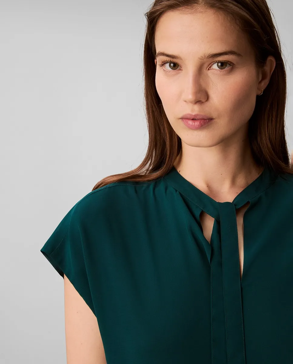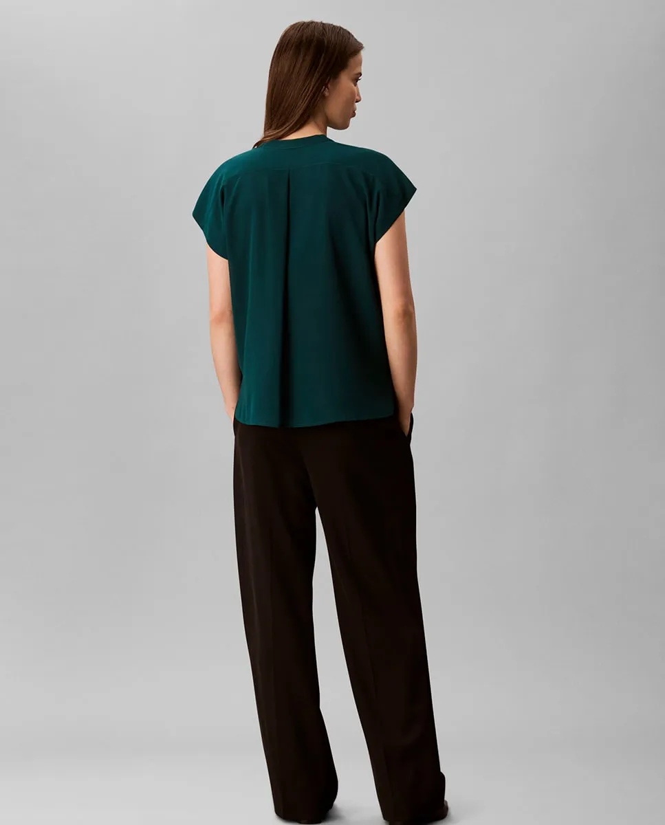 Женская шифоновая блузка Calvin Klein, выполненная из полиэстера и переработанного полиэстера, без рукавов с отделкой в виде завязки на воротнике.