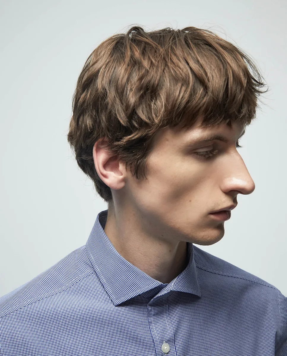 Рубашка в микро-клетку обычного кроя Sfera, синий