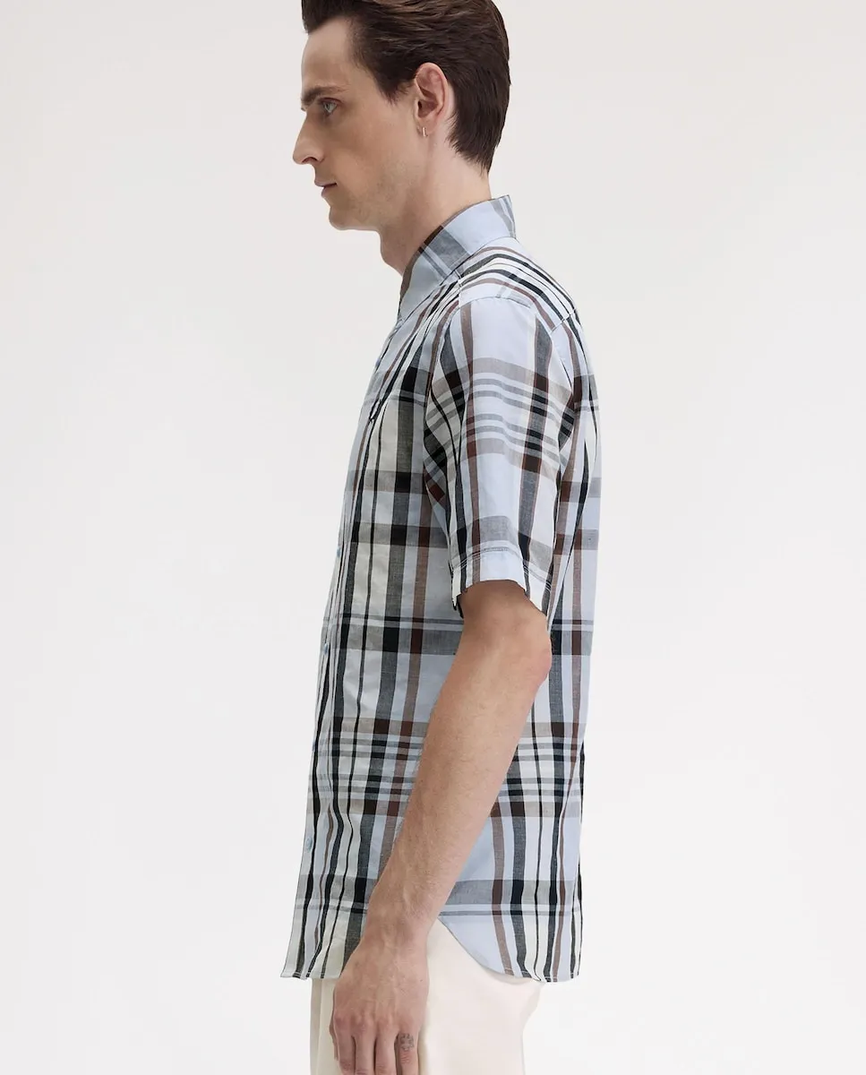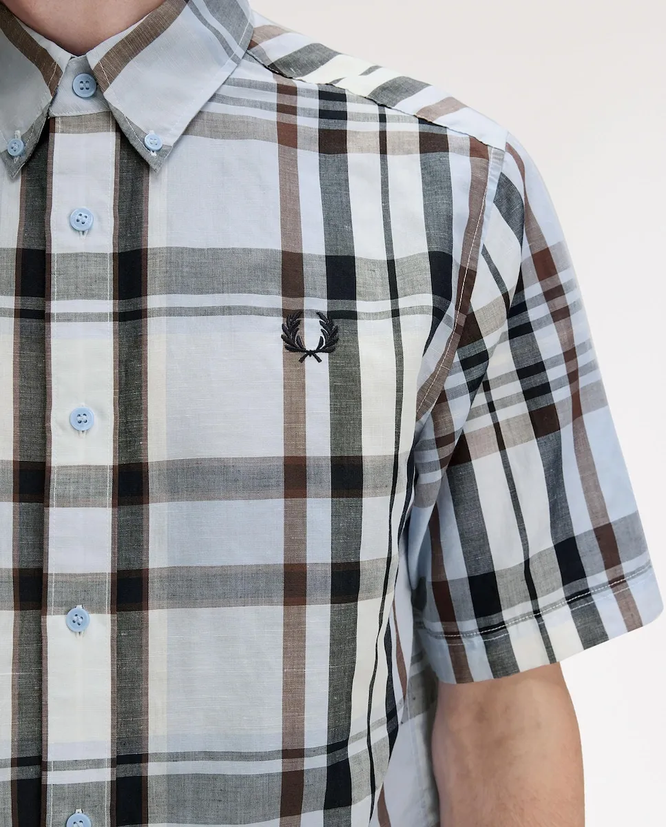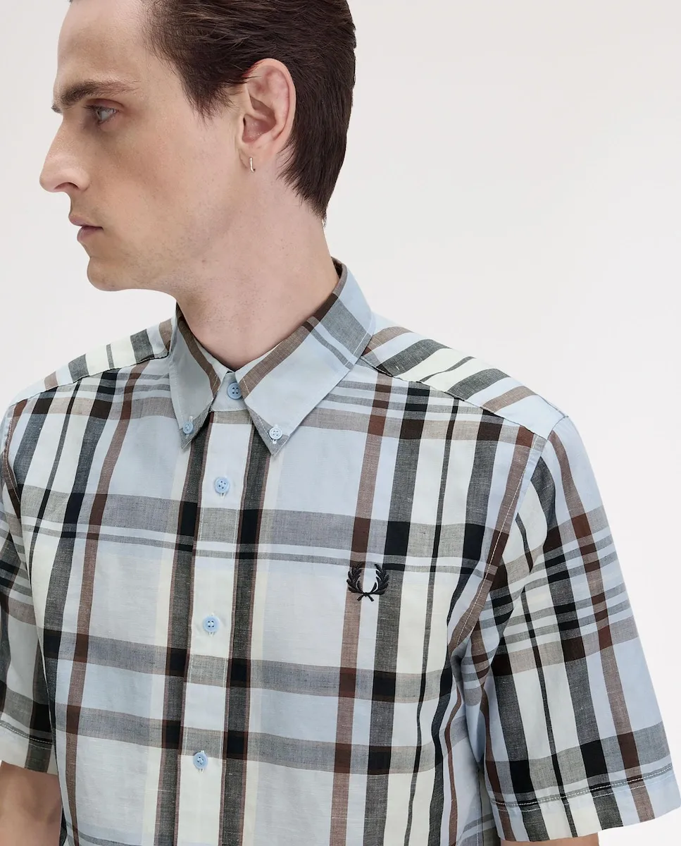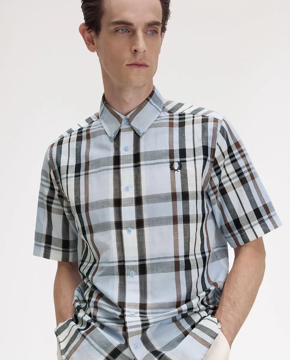 Мужская короткая рубашка в клетку Fred Perry, синий/серый