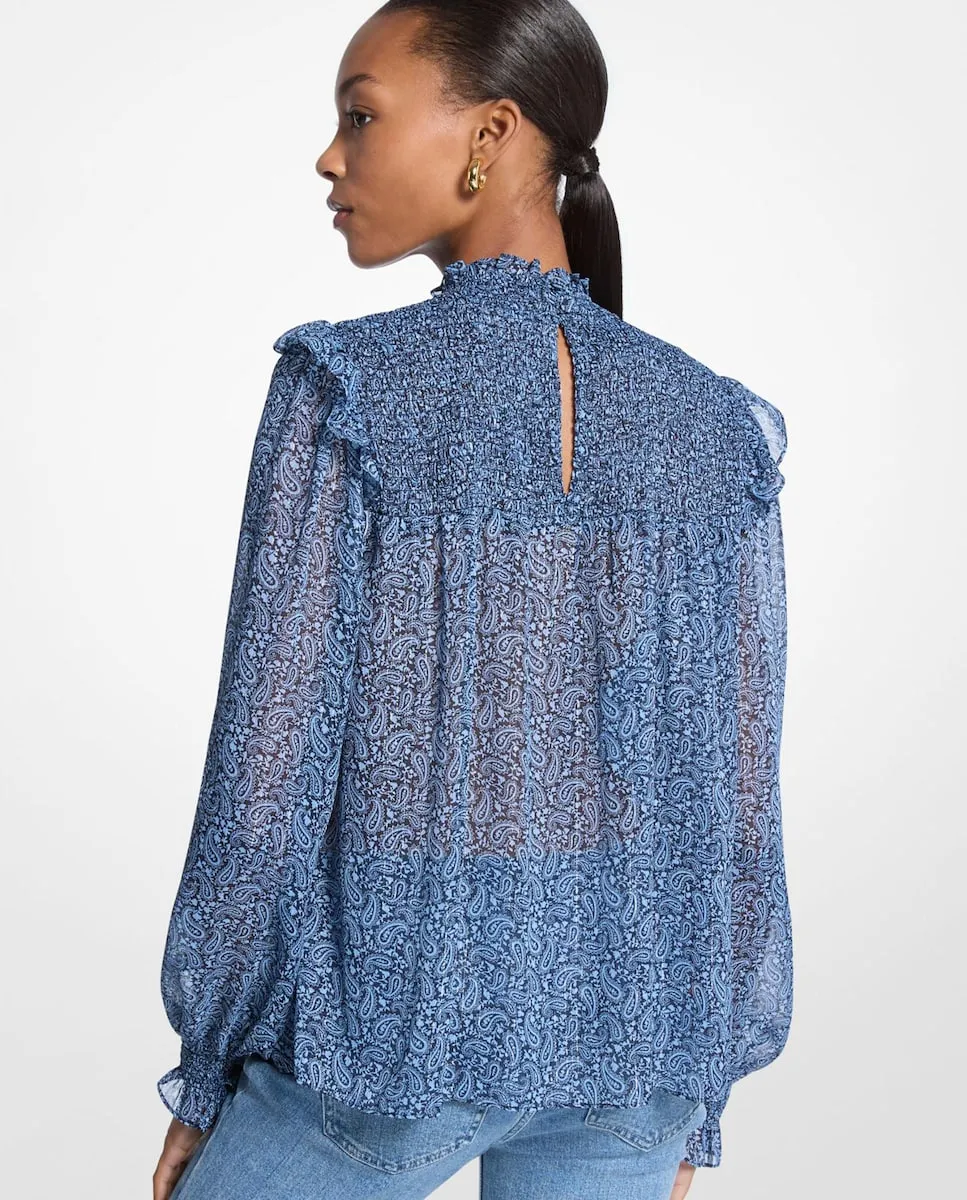 Блузка из гортекса с принтом в богемном стиле Michael Michael Kors, синий