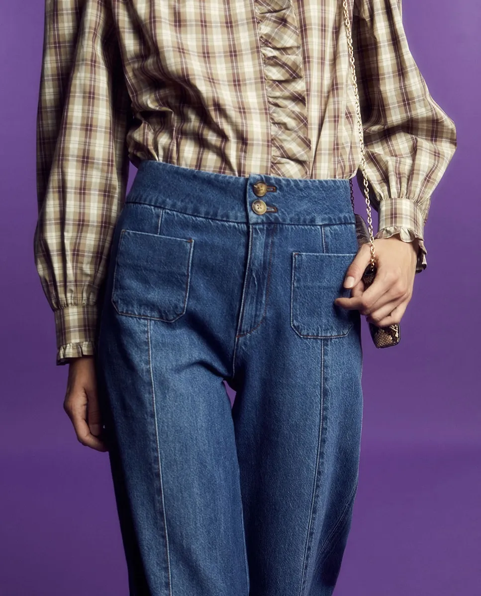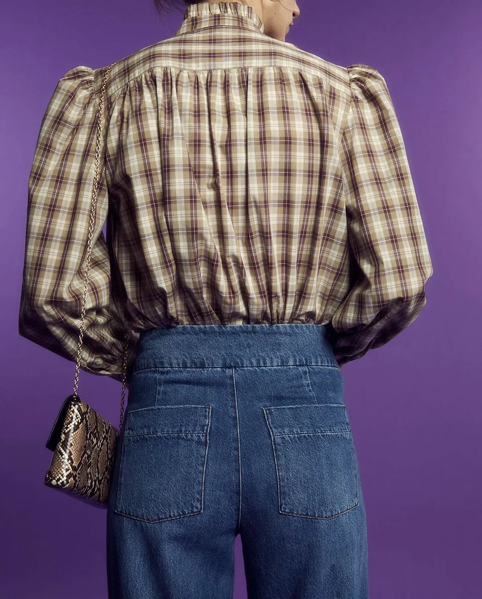 Рубашка с длинными рукавами в клетку. Детали с рюшами и застежка на пуговицы.