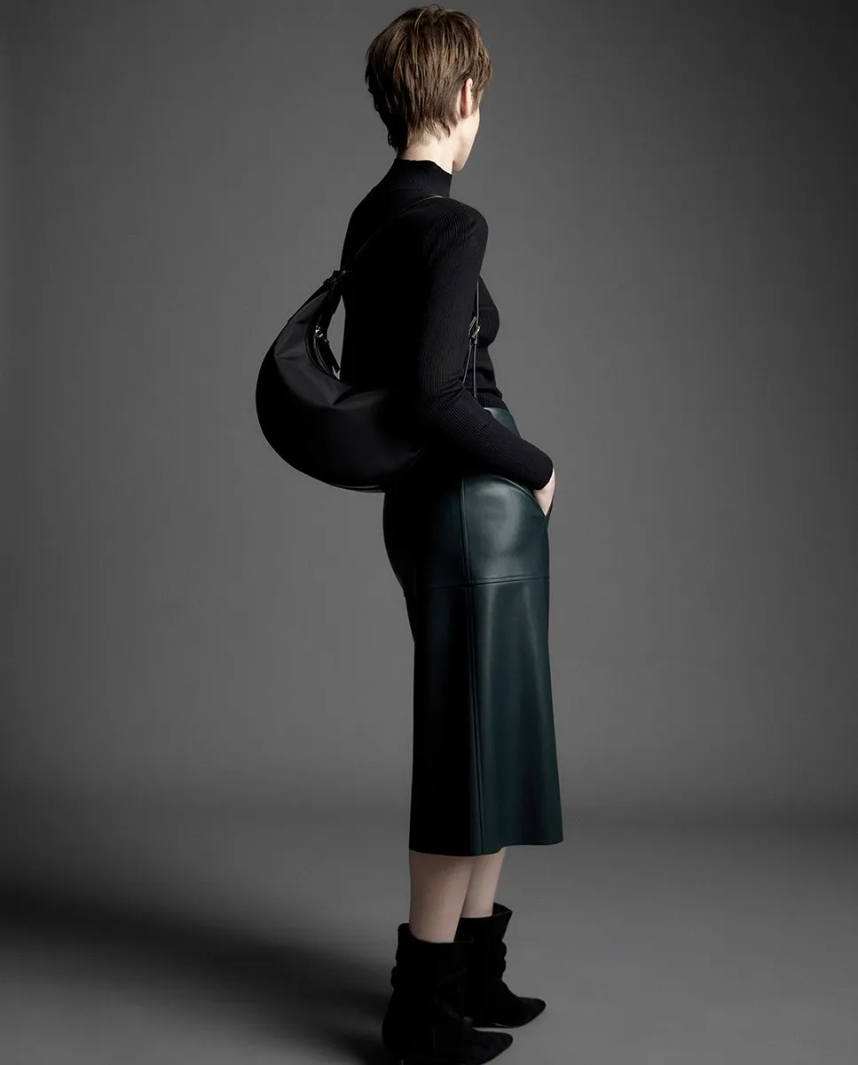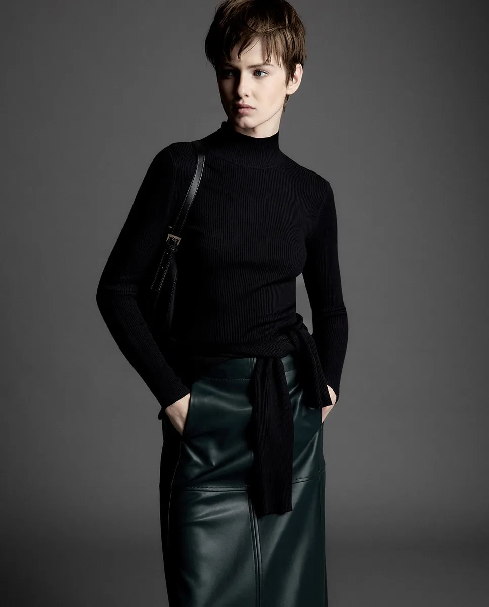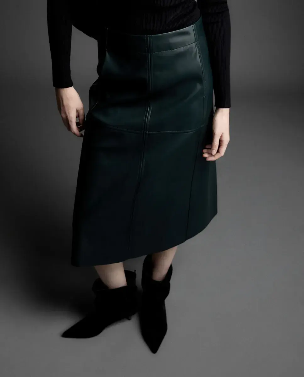 Миди-юбка с эффектом кожи. Застежка-молния скрытая