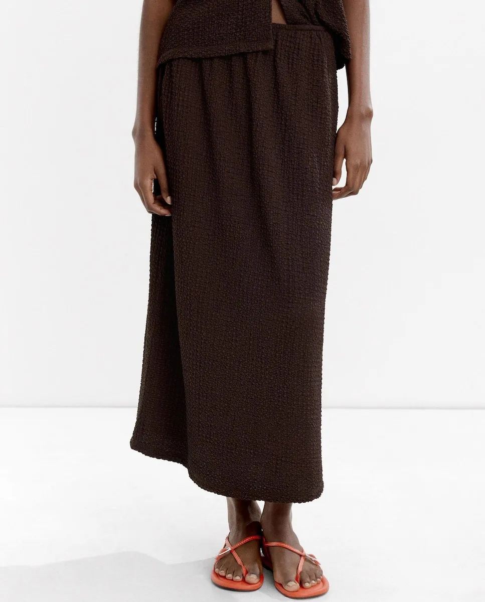 Длинная юбка с текстурой Parfois, темно-коричневый