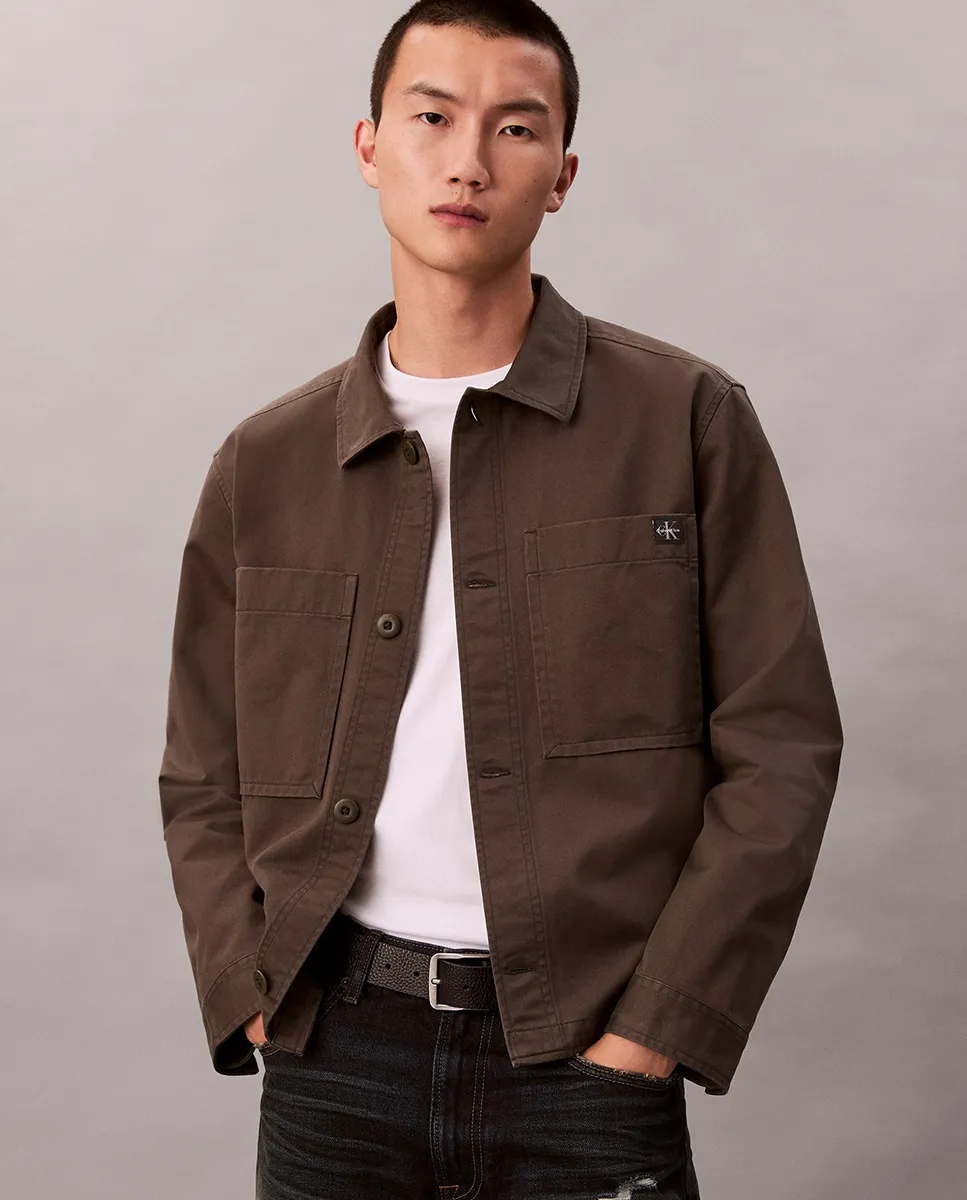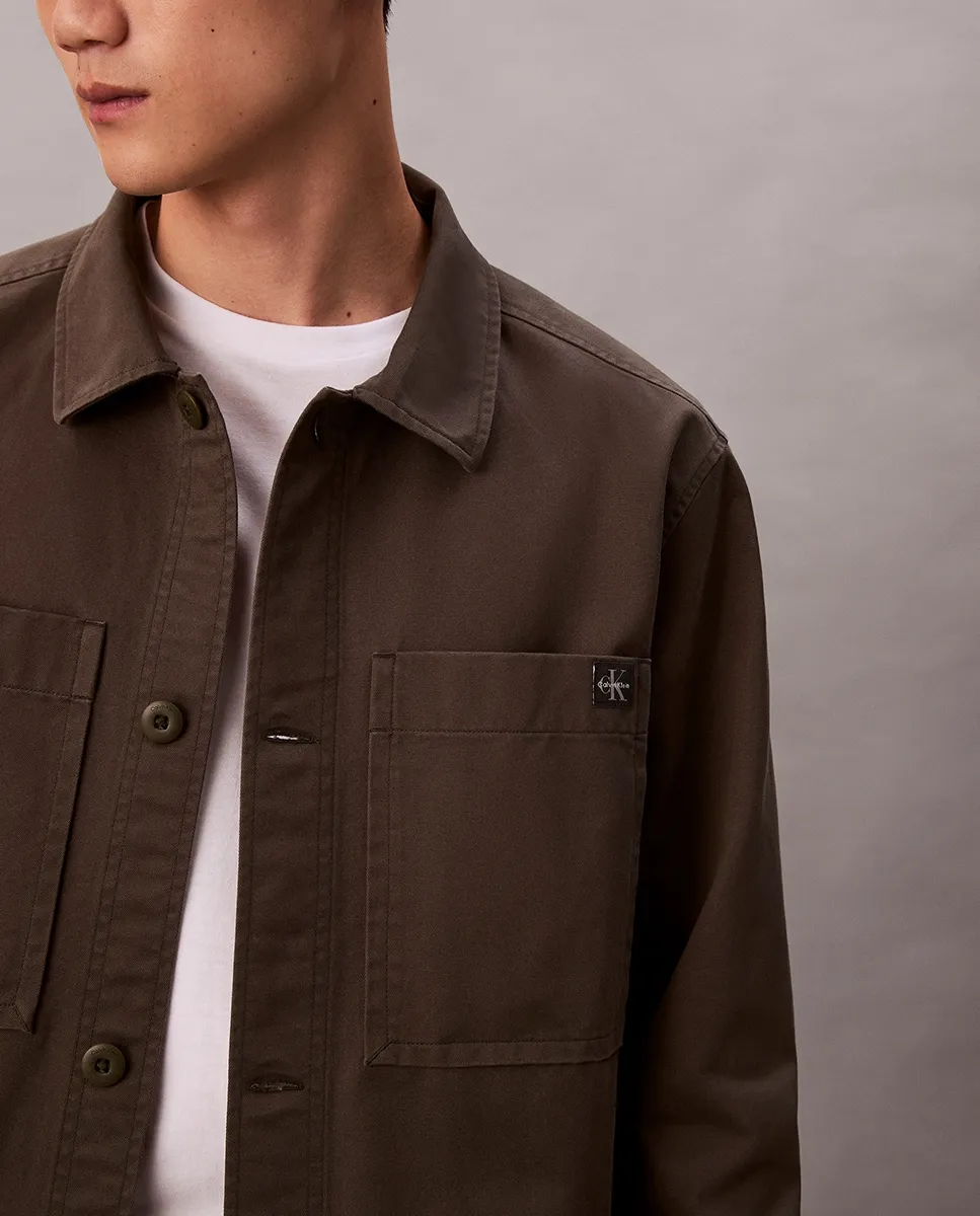 Мужская рубашка-овершот, выполненная из 100% органического хлопка, с карманом и логотипом CK на кармане.