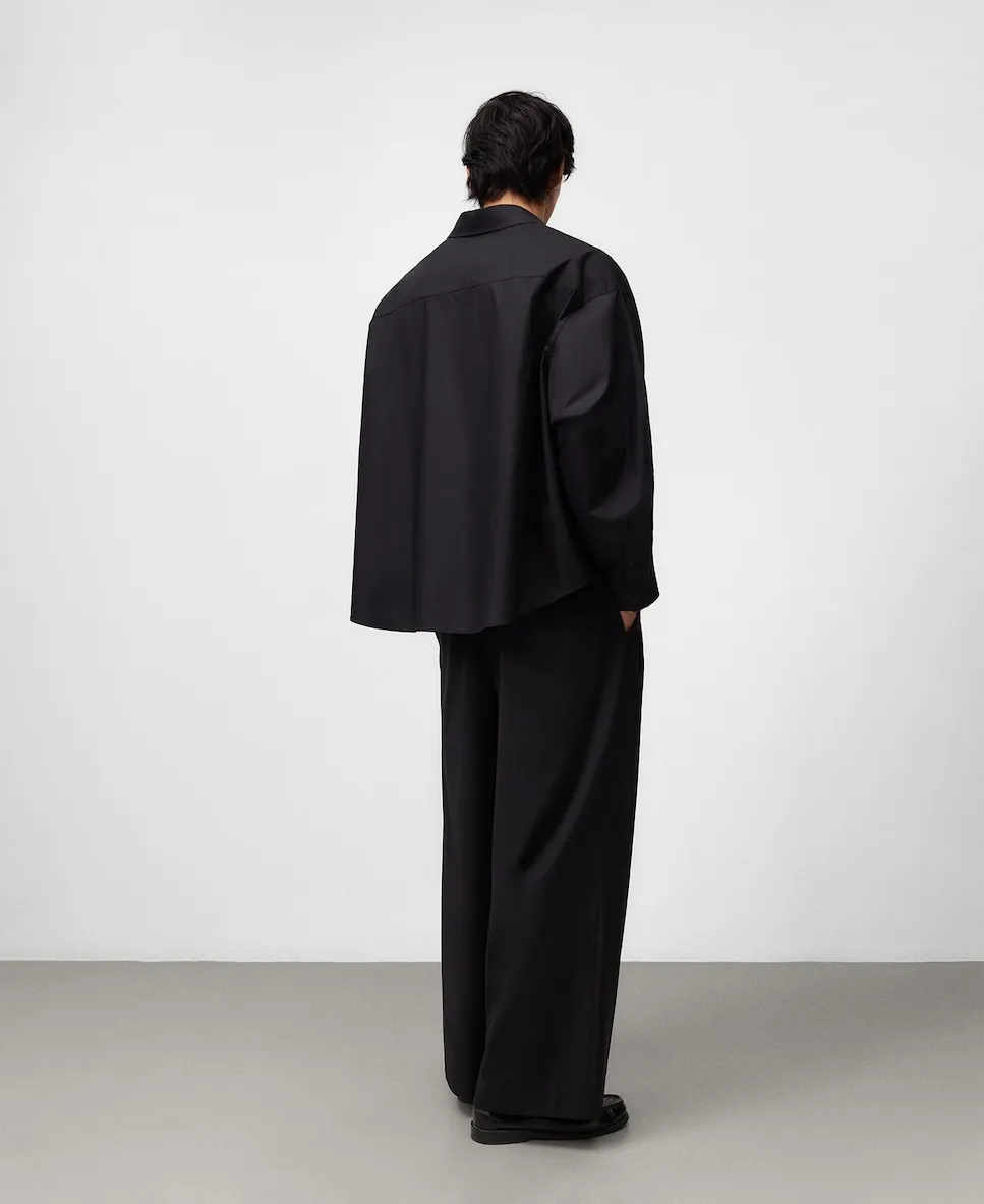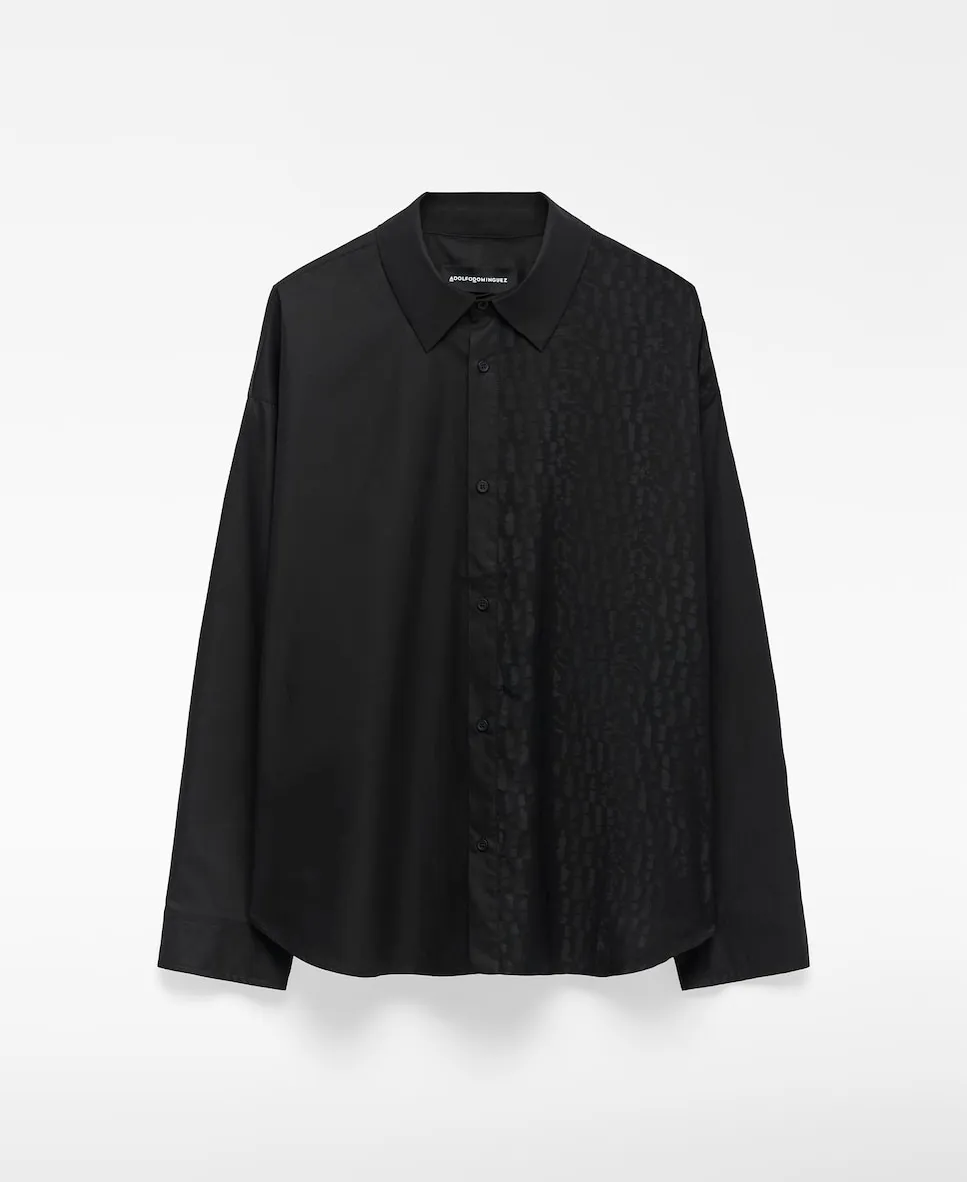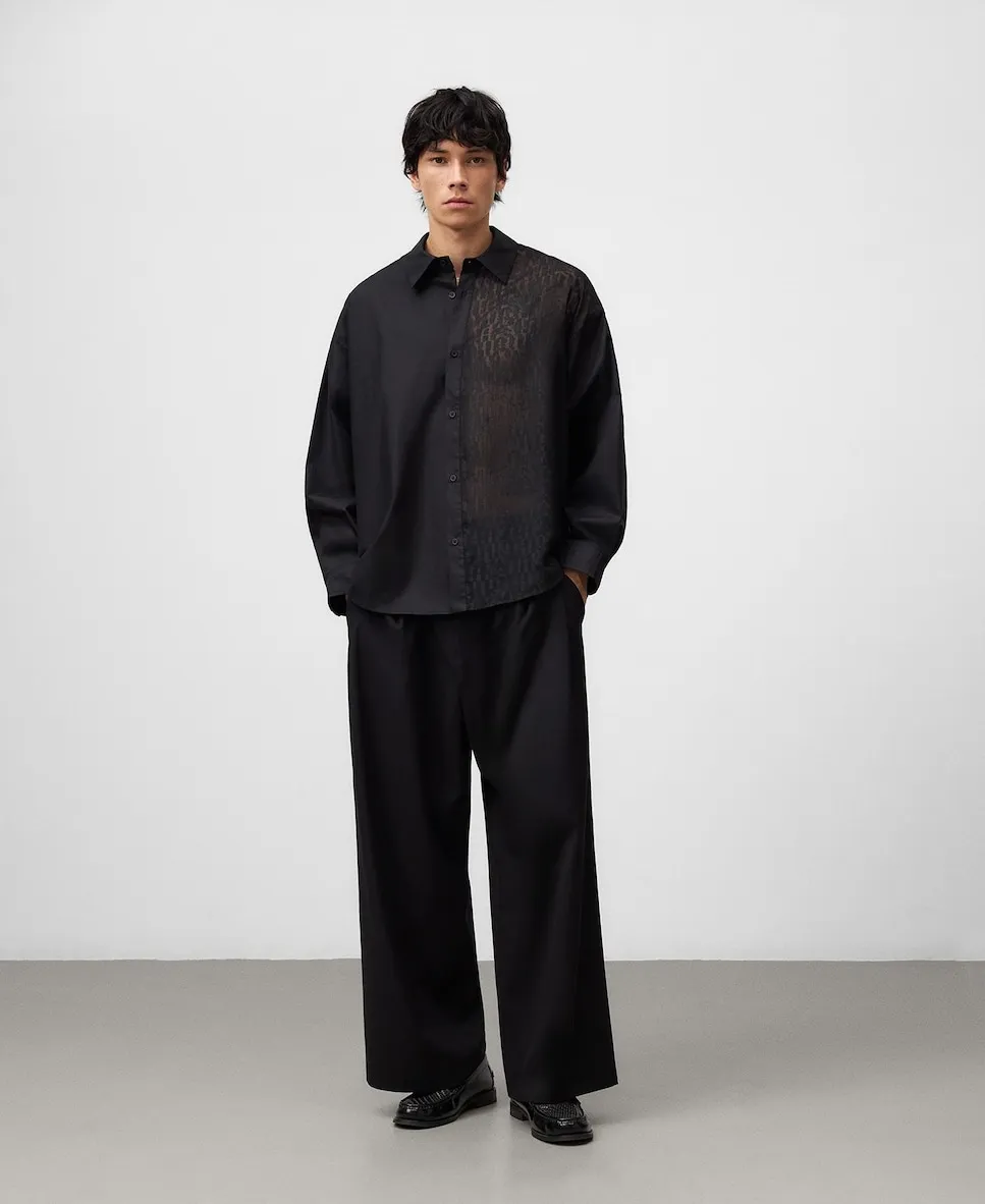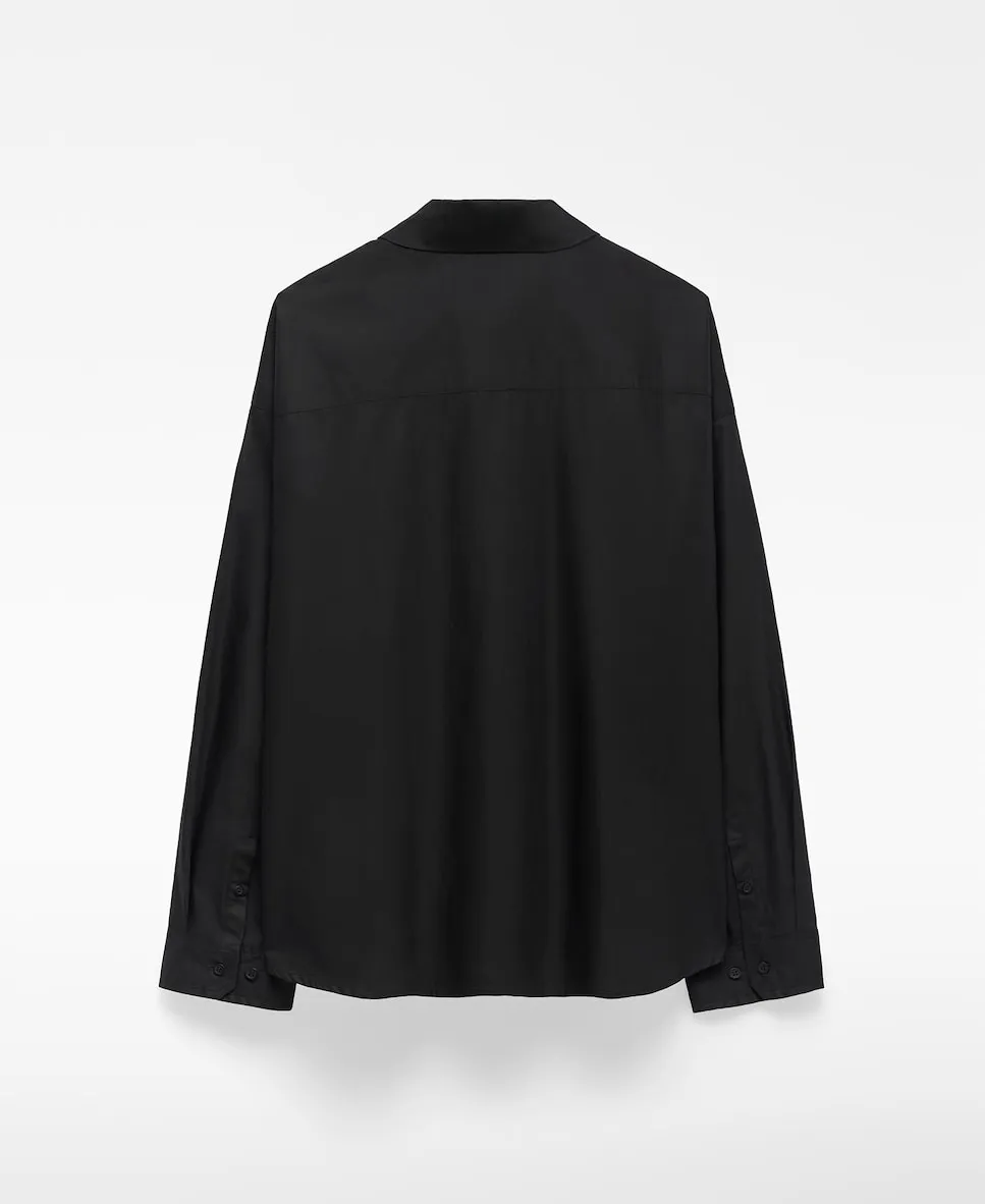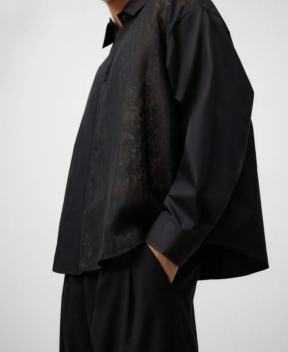 Хлопковая рубашка оверсайз с отделкой devoré на передней левой стороне. Рубашка с длинными рукавами, отложным воротником, застежкой на пуговицы спереди и кокеткой на спинке. Размер больше обычного.