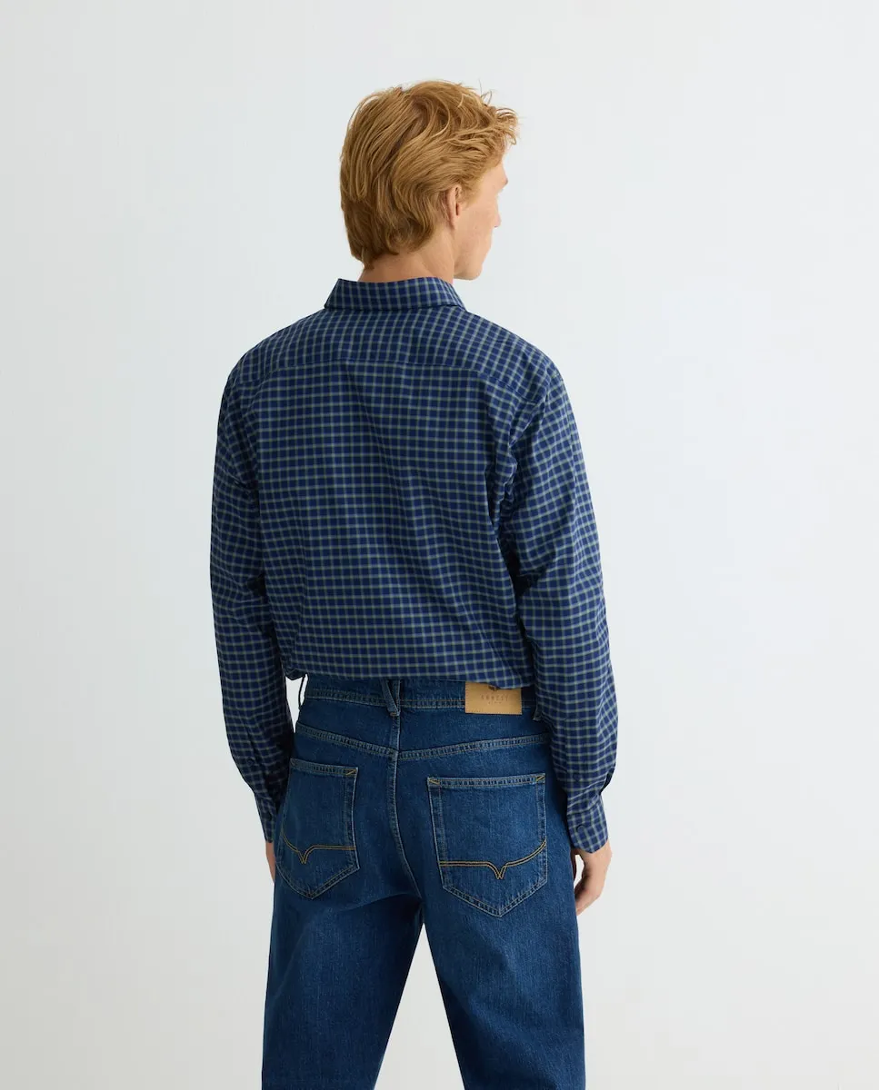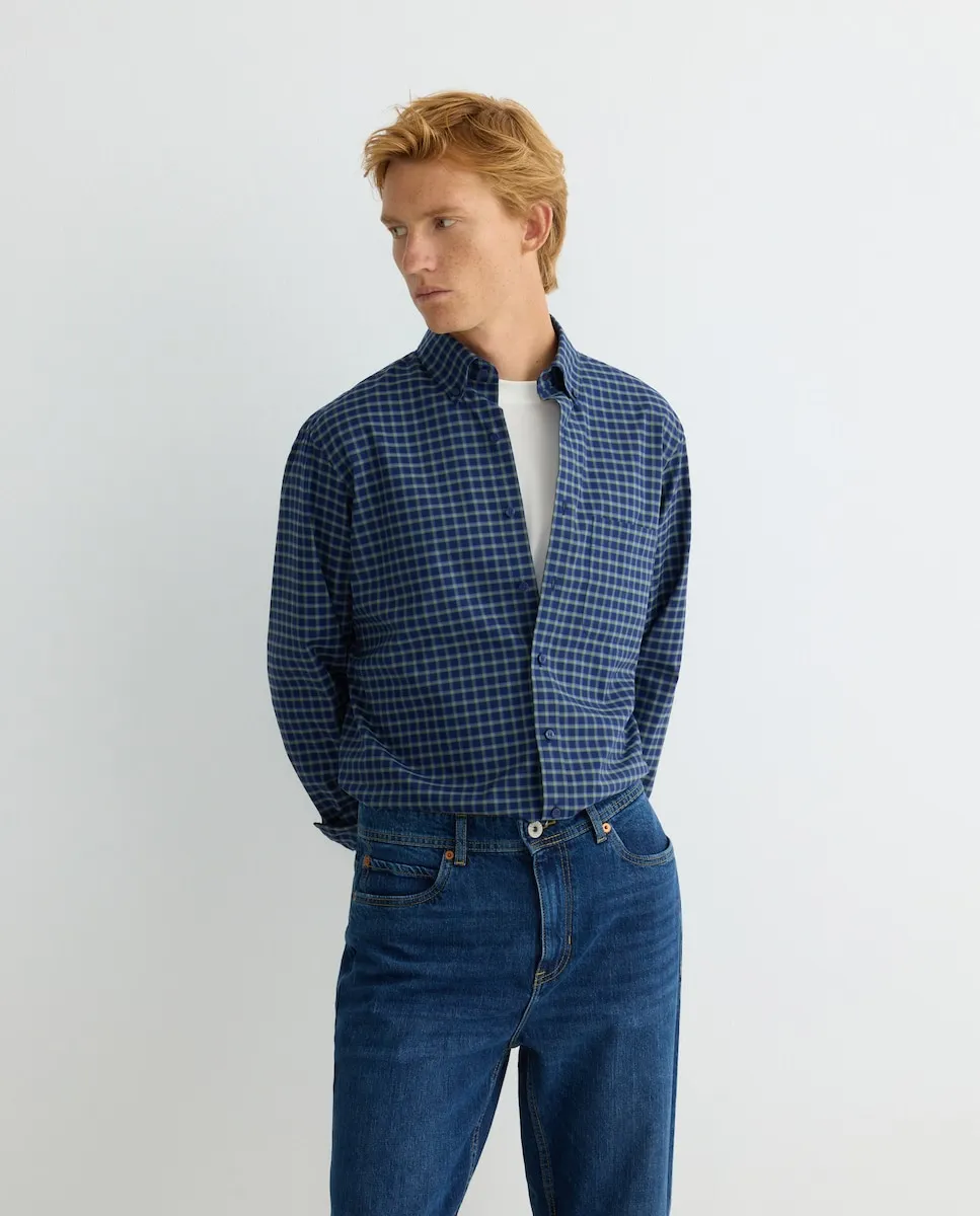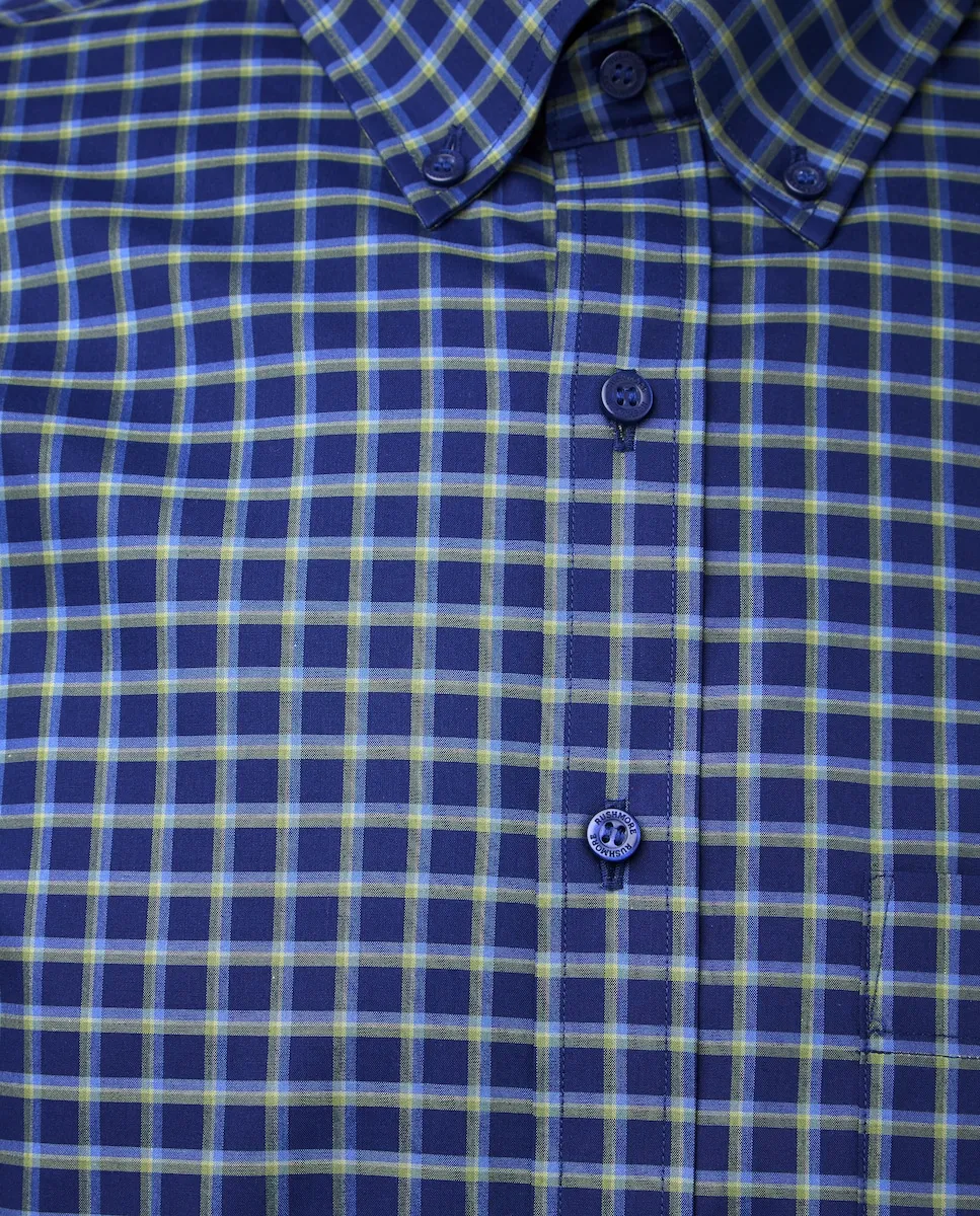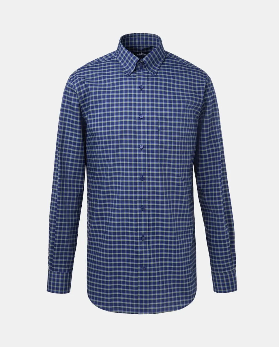 Футболка спортивная с длинными рукавами обычного кроя 100% хлопок NON IRON поплин в среднюю клетку, воротник с кнопкой, манжета с острием, с карманом
