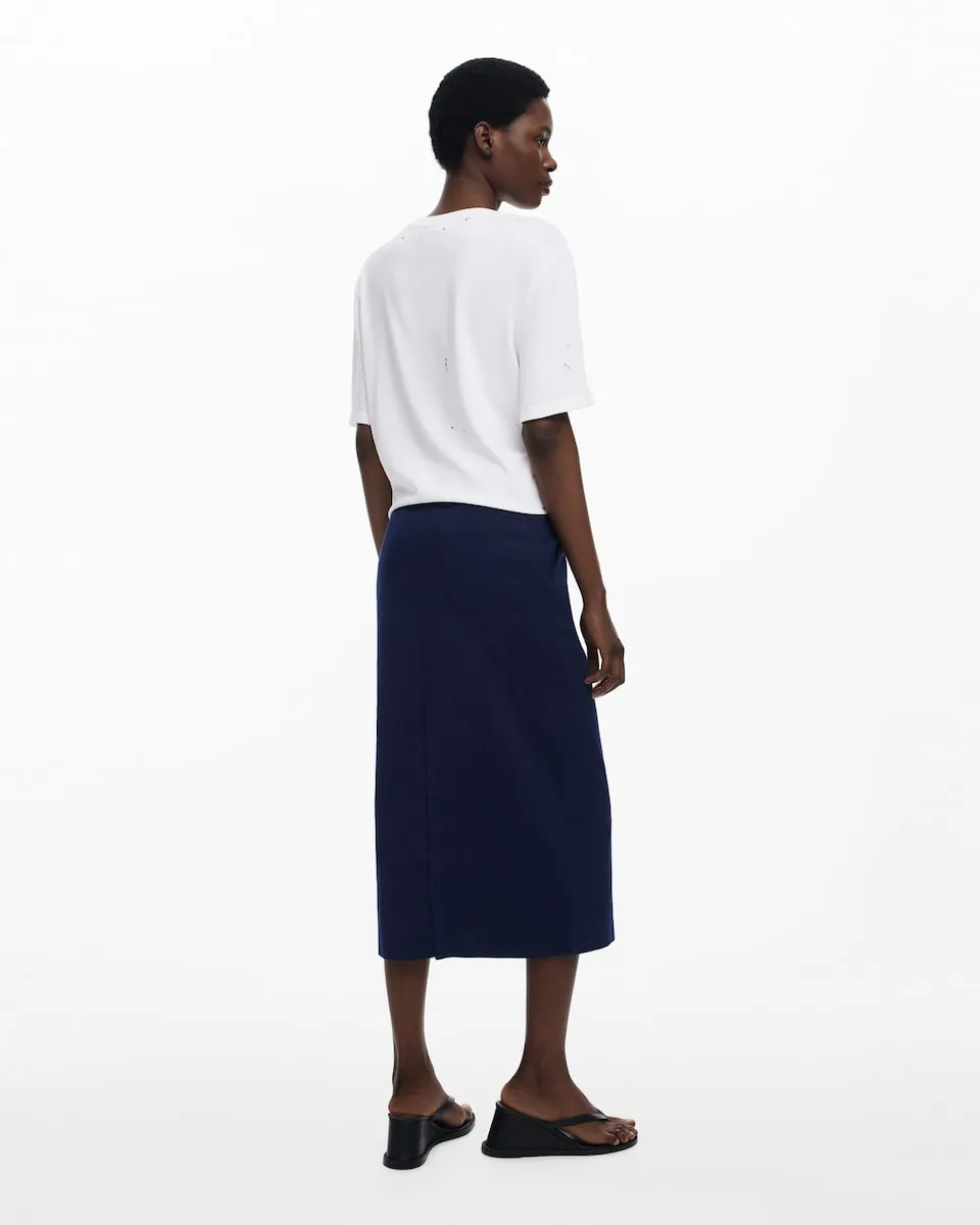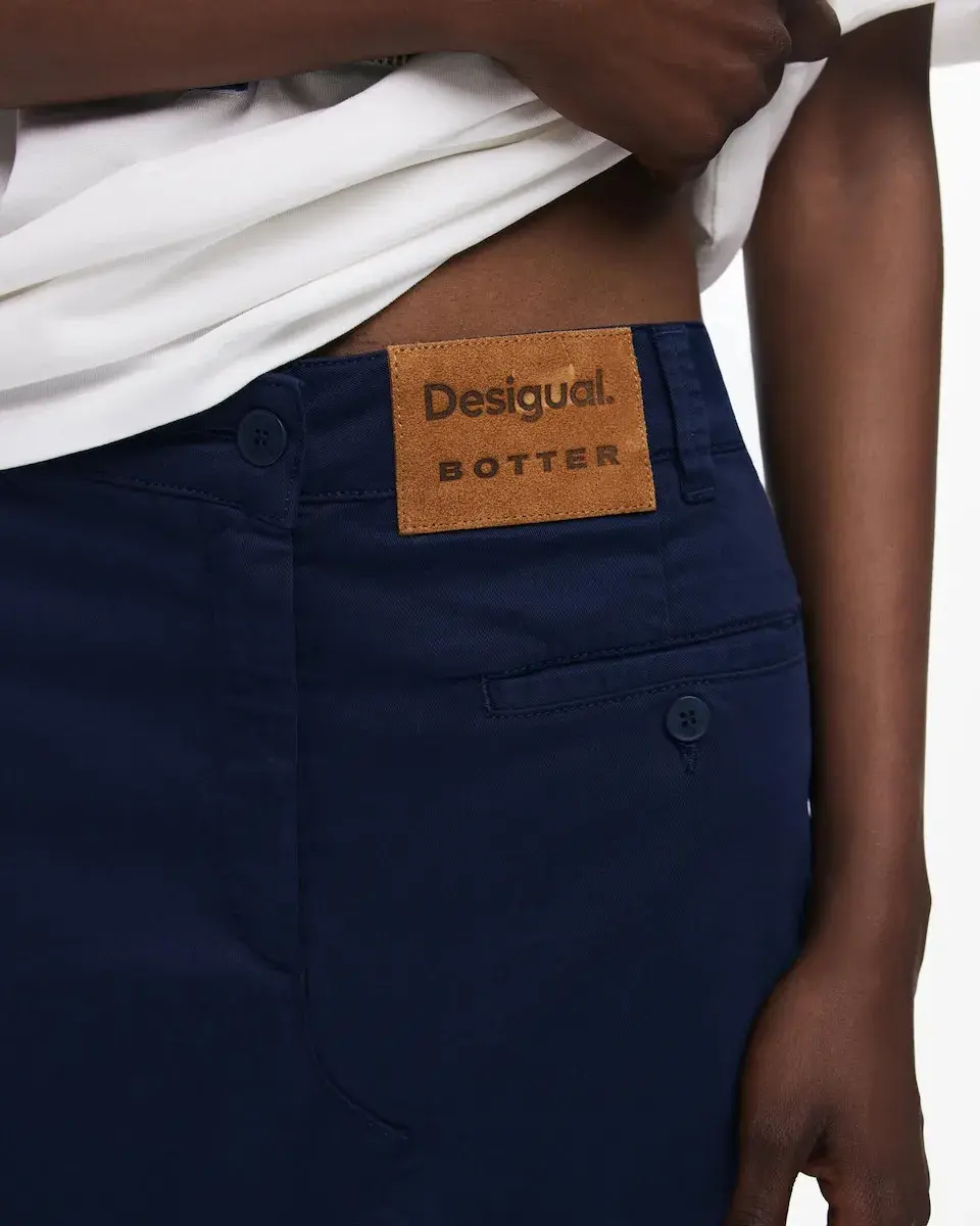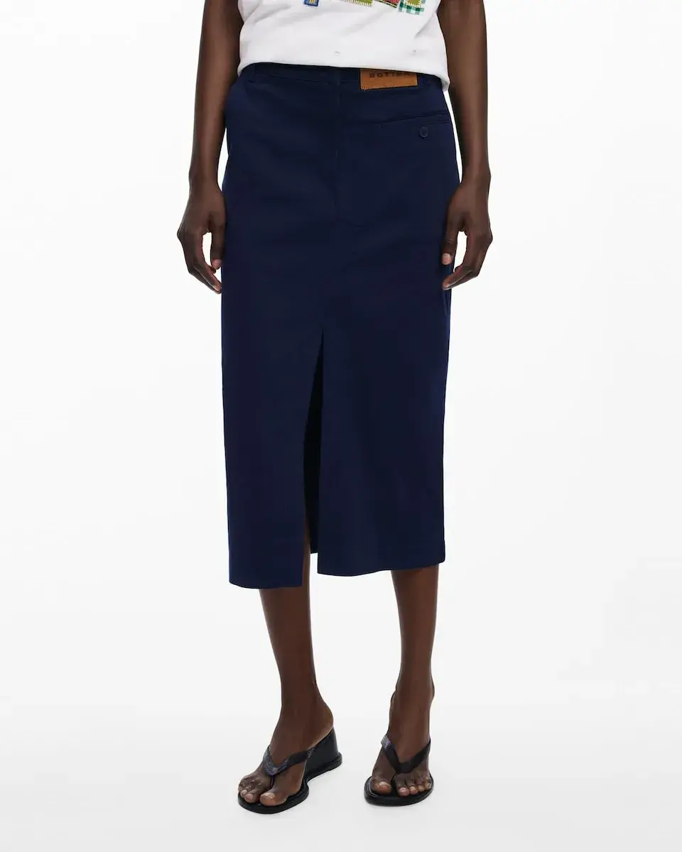 Юбка-карандаш миди с немного эластичной тканью, задними и передними разрезами и кожаной этикеткой с логотипом на поясе. Крой: прямой. Длина: миди. Застежка: на пуговицу и молнию. Кожаная этикетка с тисненым логотипом. Botter. Покупая хлопковые изделия Desigual, вы поддерживаете наши инвестиции в Better Cotton. Этот продукт производится по системе массового баланса и может не содержать Better Cotton. bettercotton.org/massbalance.