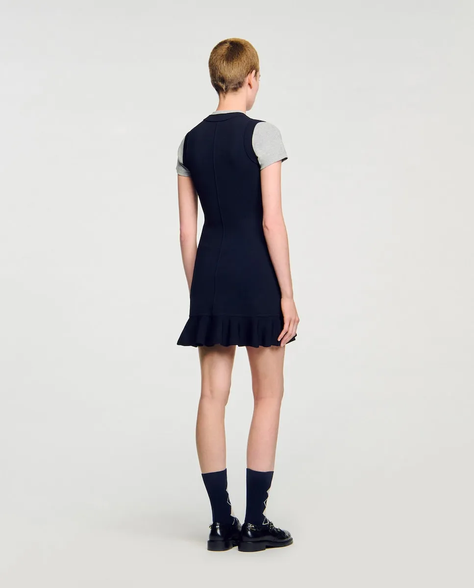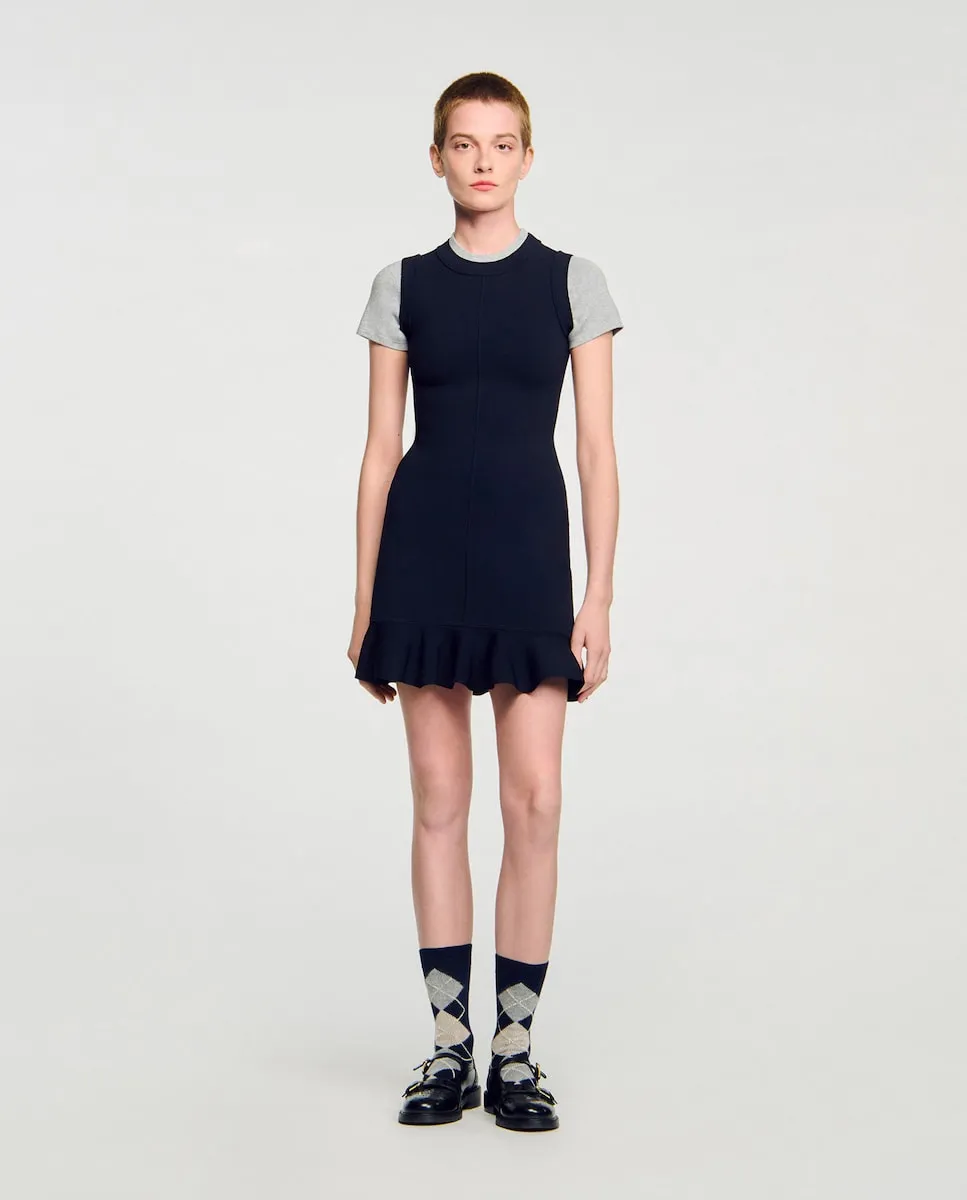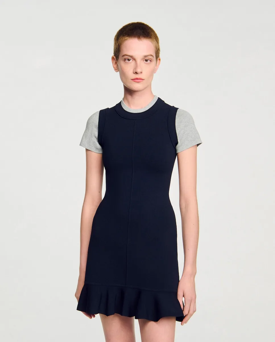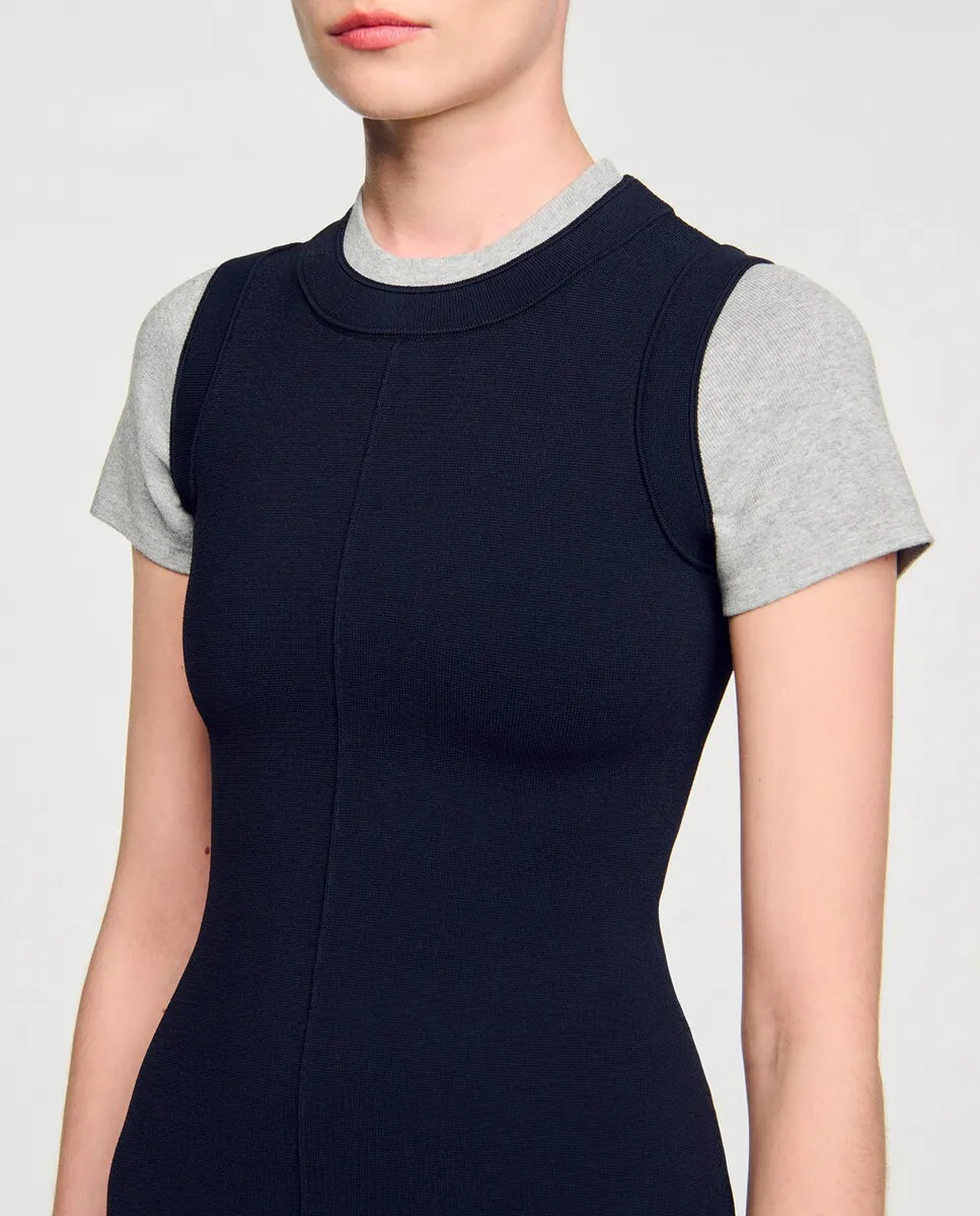 Короткое трикотажное платье 2 в 1 Sandro, темно-синий