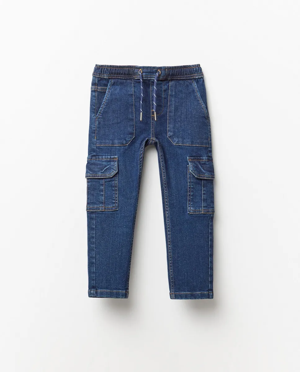 Джинсовые карго-брюки с регулируемым шнурком на талии