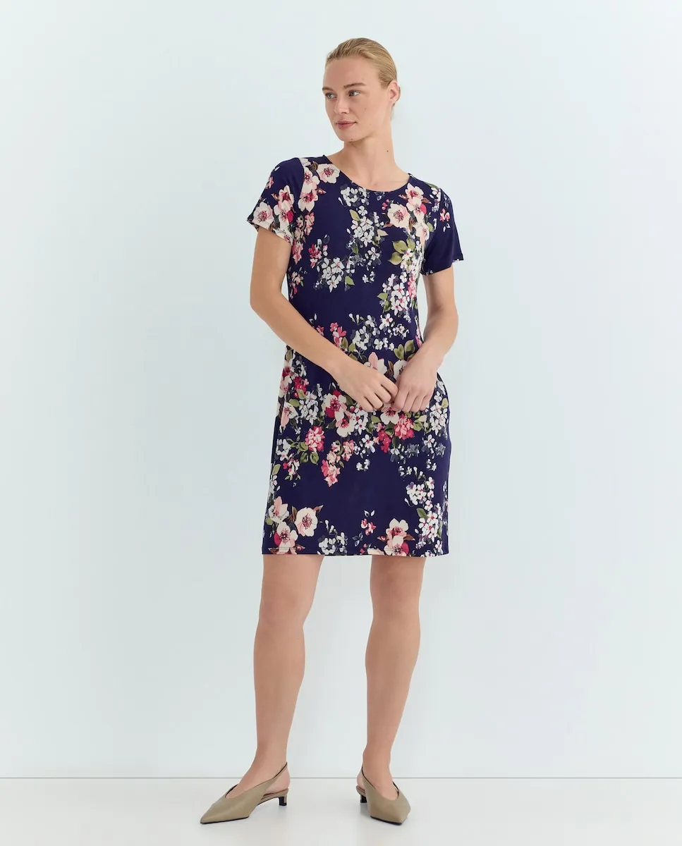 Платье с короткими рукавами и узором Zermatt, темно-синий