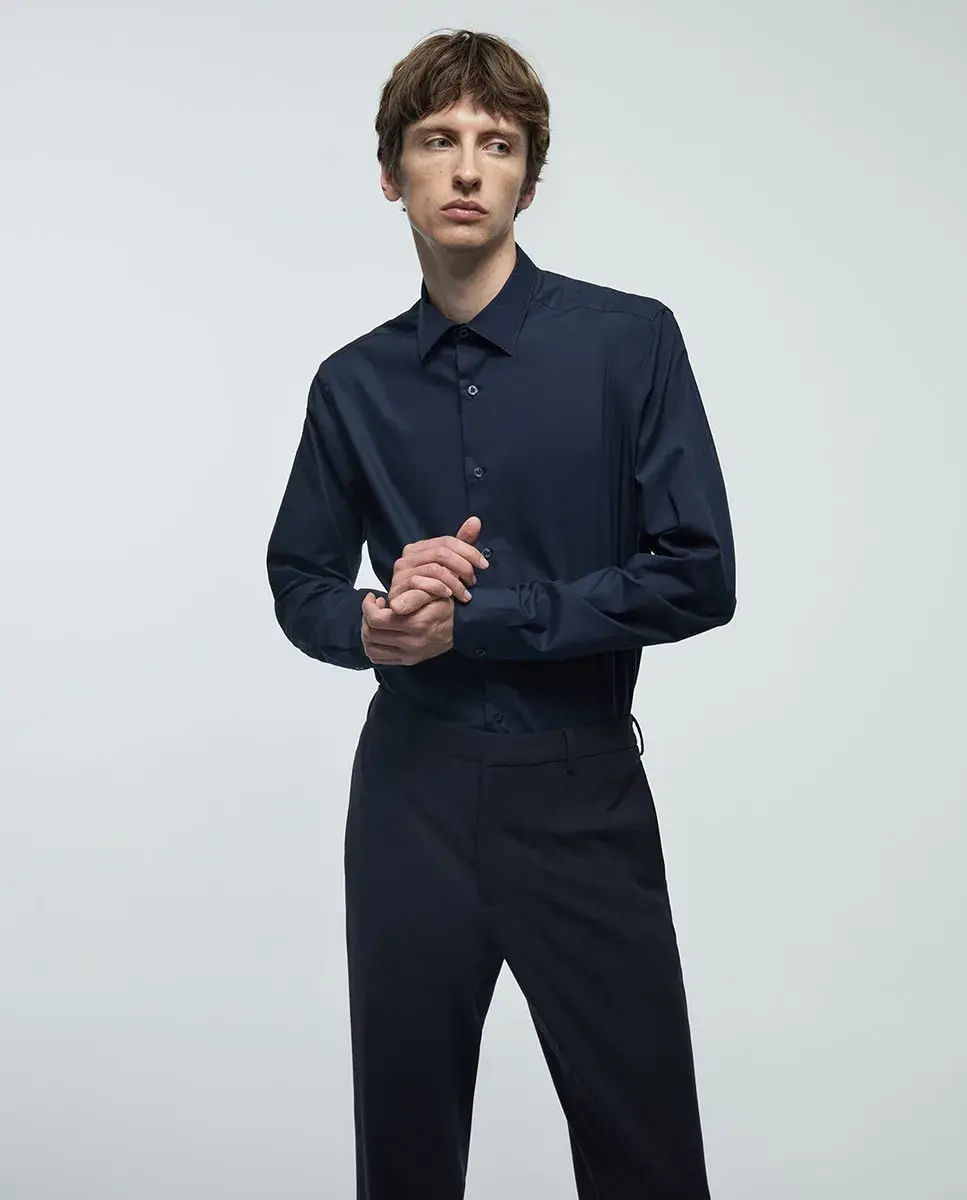 Рубашка из поплина с длинными рукавами и застежкой на пуговицы. Облегающий силуэт