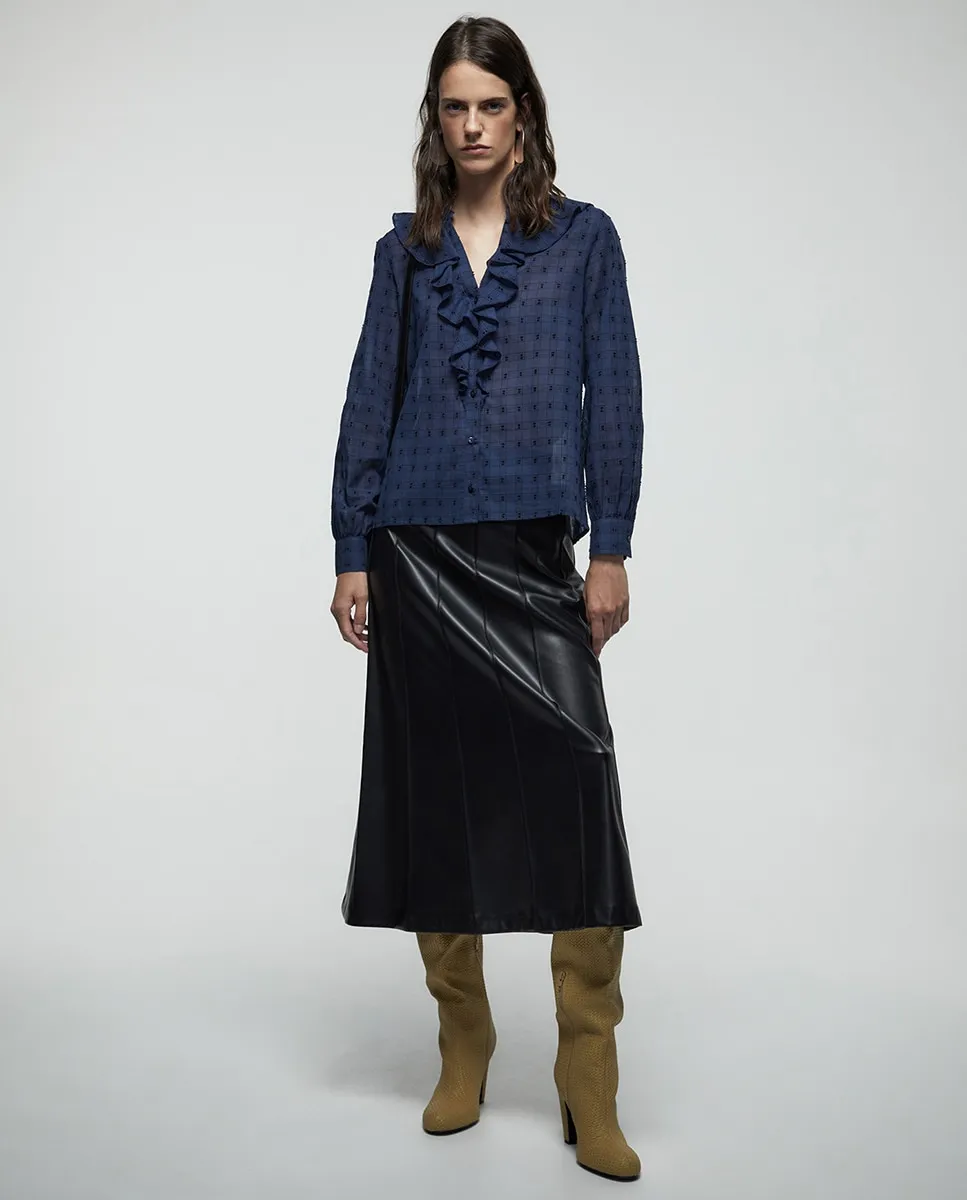 Блузка с воланами из добби Sfera, темно-синий 4 053₽