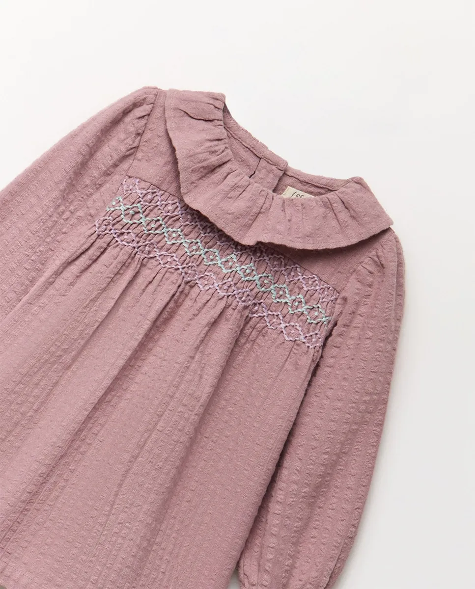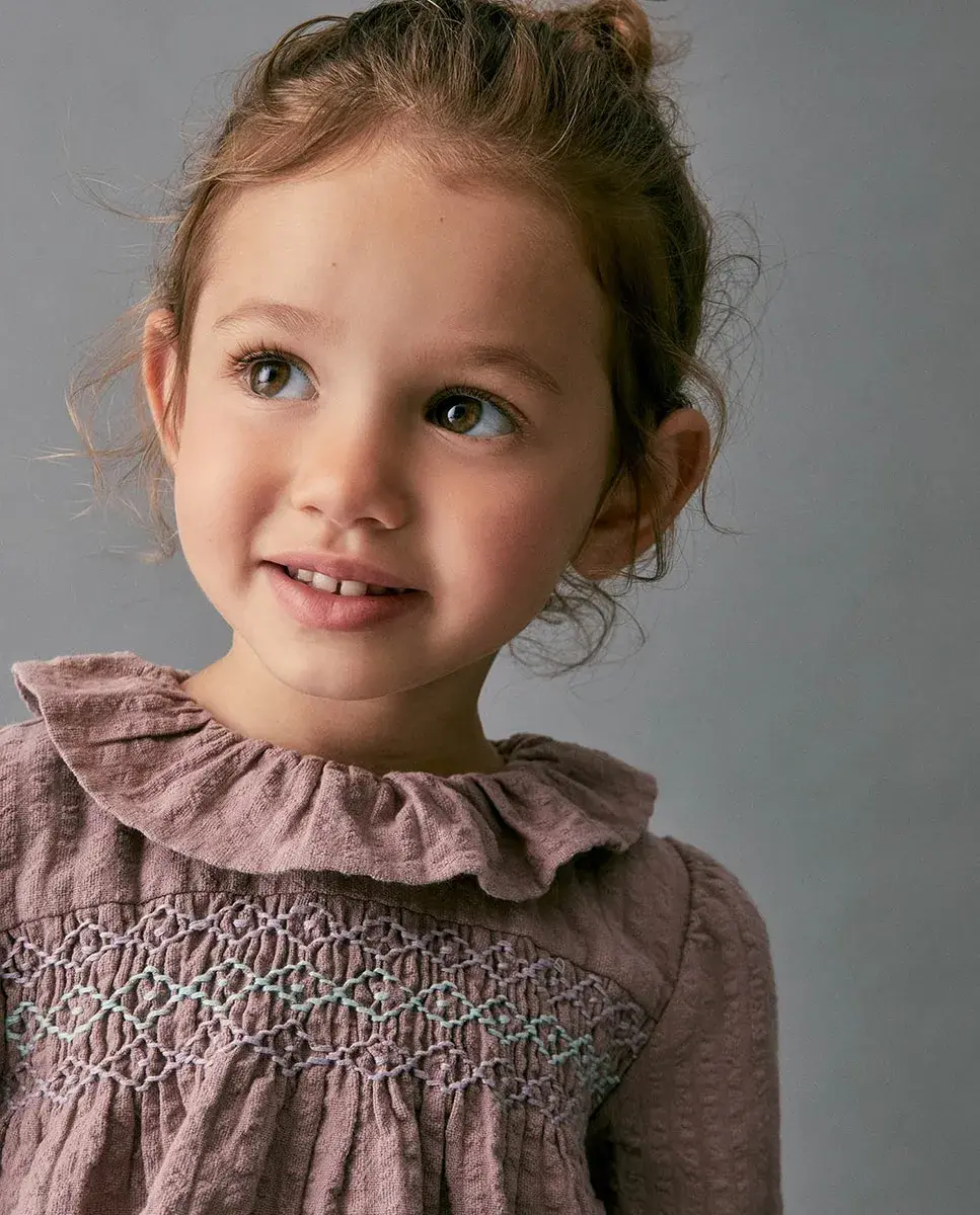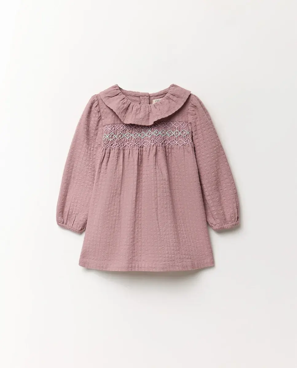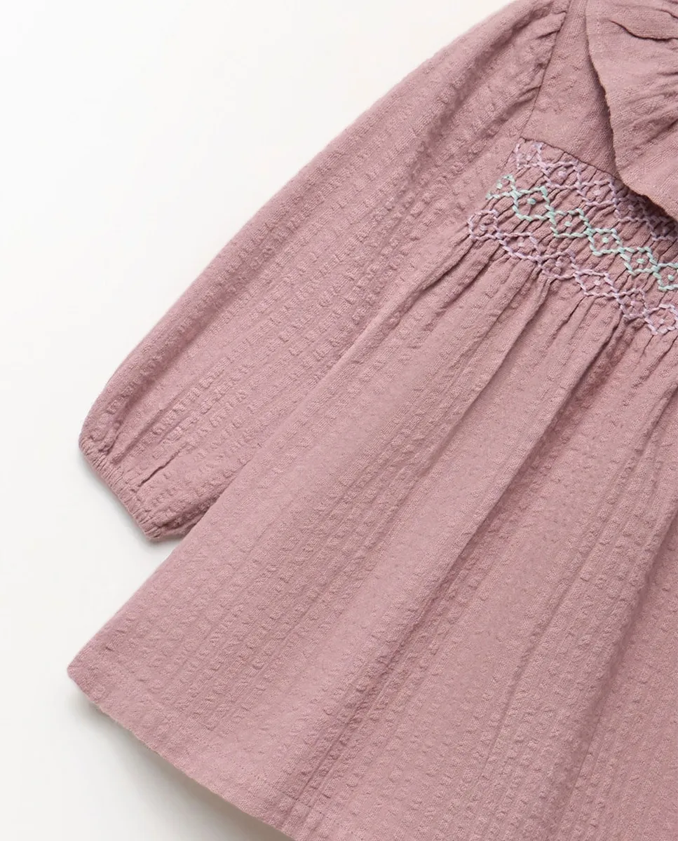 Платье добби с вышивкой на груди. Застежка на спинке на пуговицах. 100% хлопок