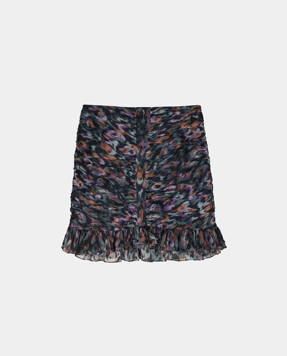 Драпированная мини-юбка с принтом и оборкой по низу. Застежка на молнию.
