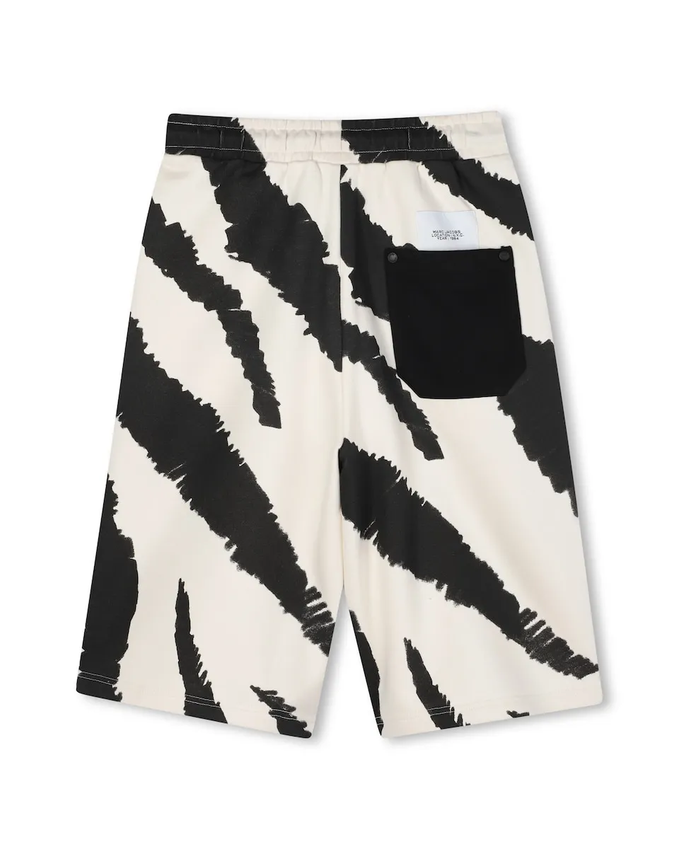 Эти шорты из махрового органического хлопка сочетают комфорт и оригинальность благодаря своему цельному принту в виде зебры, идеально подходят для детей, которые любят выделяться. Эластичный пояс со шнурком с логотипом MARC JACOBS обеспечивает оптимальную посадку и добавляет современный штрих. Идеальные для повседневных дней, эти шорты являются элегантной и экологически ответственной одеждой.