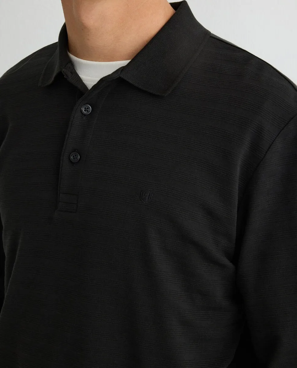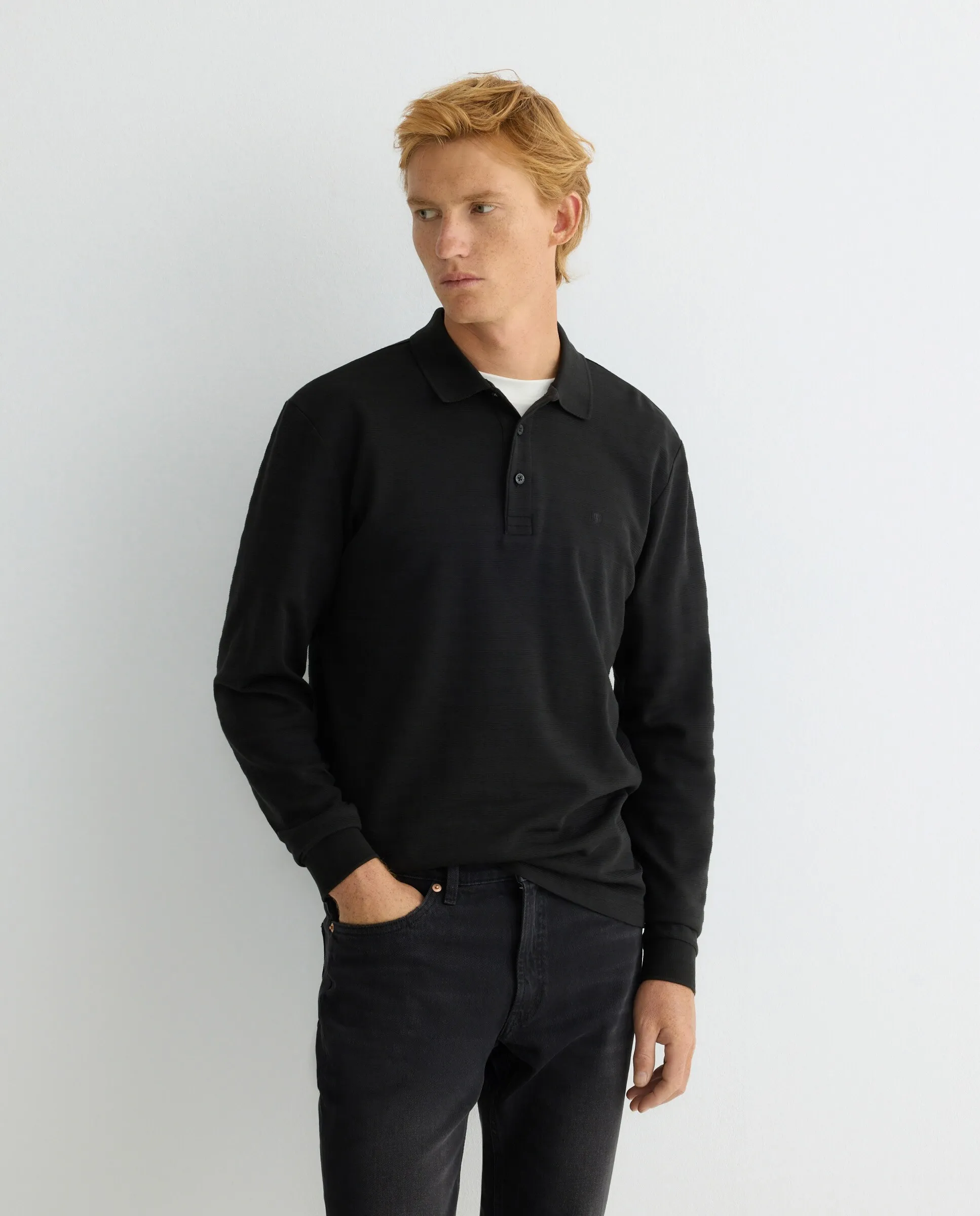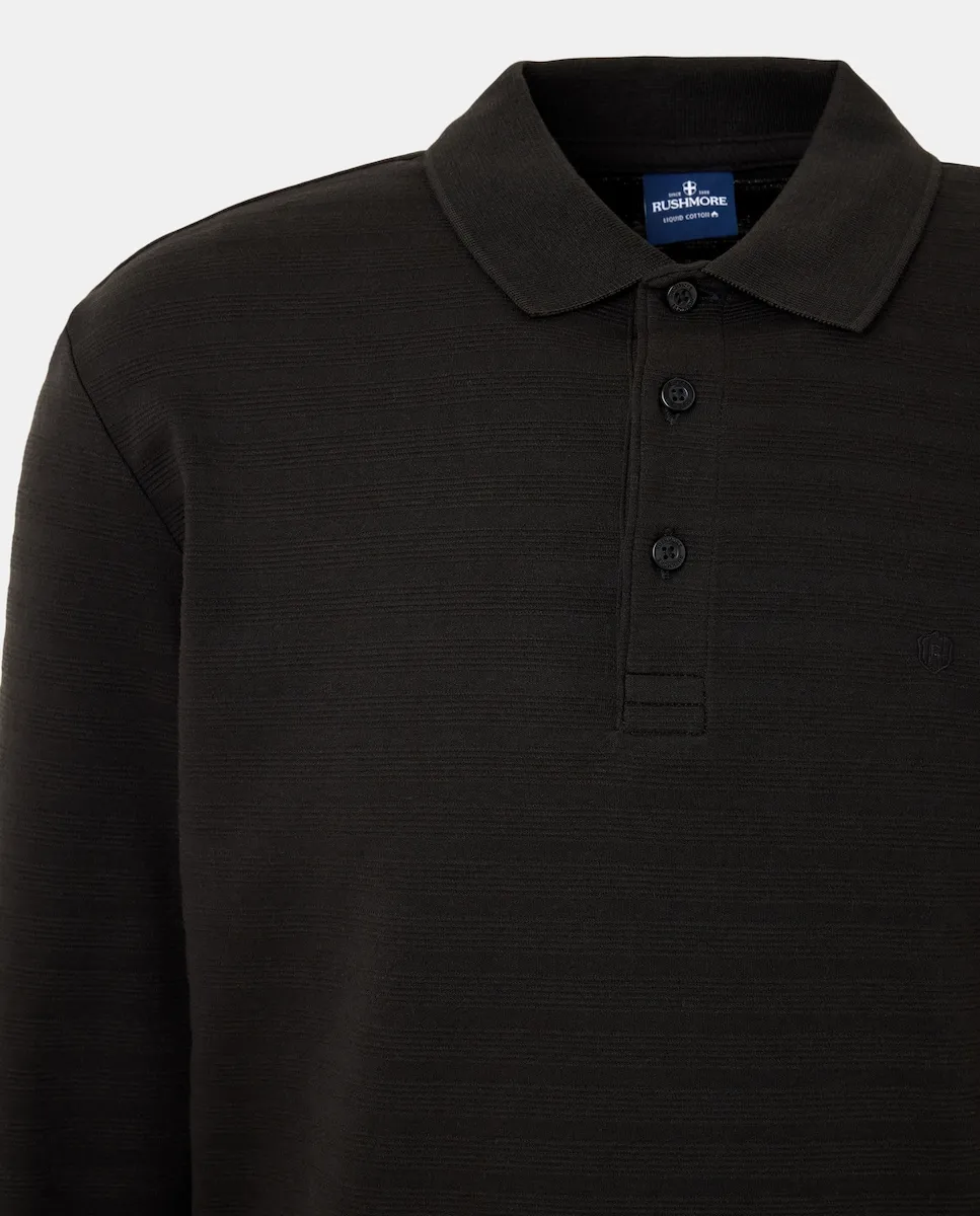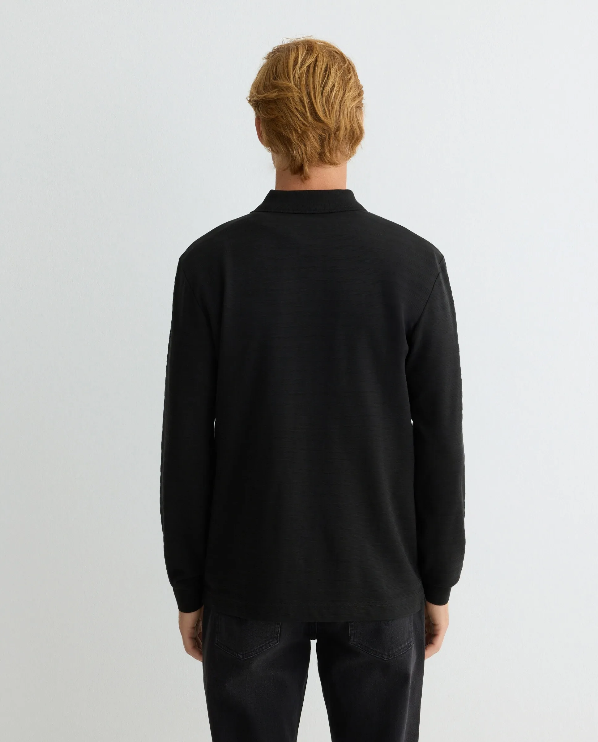 Поло с длинным рукавом жаккард, обычная посадка, 100% хлопок с отделкой liquid cotton, однотонное, очень мягкое на ощупь