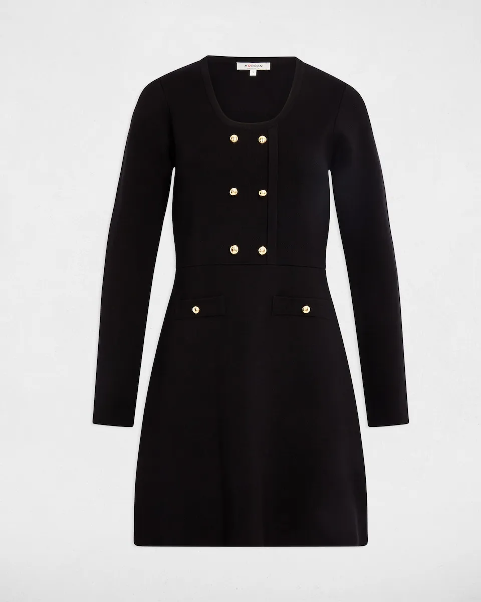 Это короткое платье с трапециевидным кроем деликатно уравновешивает силуэт, подчеркивая верхнюю часть тела. Его плавная форма сопровождает каждое движение с естественной элегантностью. Пуговицы добавляют женственный и утонченный штрих, идеально подходящий для современного легкого стиля. - Короткое платье. - Плавное. - Трапециевидный крой. - Длинные рукава. - Круглый вырез. - Пуговицы. Идеи образов. - Плавное платье с трапециевидным кроем сочетается с босоножками на каблуке и структурированной сумкой для создания утонченного вида. - Это короткое изделие носится с облегченным тренчем и элегантными ботильонами, подчеркивая его смелый характер. Советы по уходу. Стирайте платье в машине при 30°C, выбирая ультраделикатный режим для сохранения качества ткани. Возможна глажка: используйте низкую температуру (максимум 110°) и не используйте пар, так как это крайне не рекомендуется. Использование сушилки также крайне не рекомендуется, чтобы избежать любых рисков. изменение ткани.