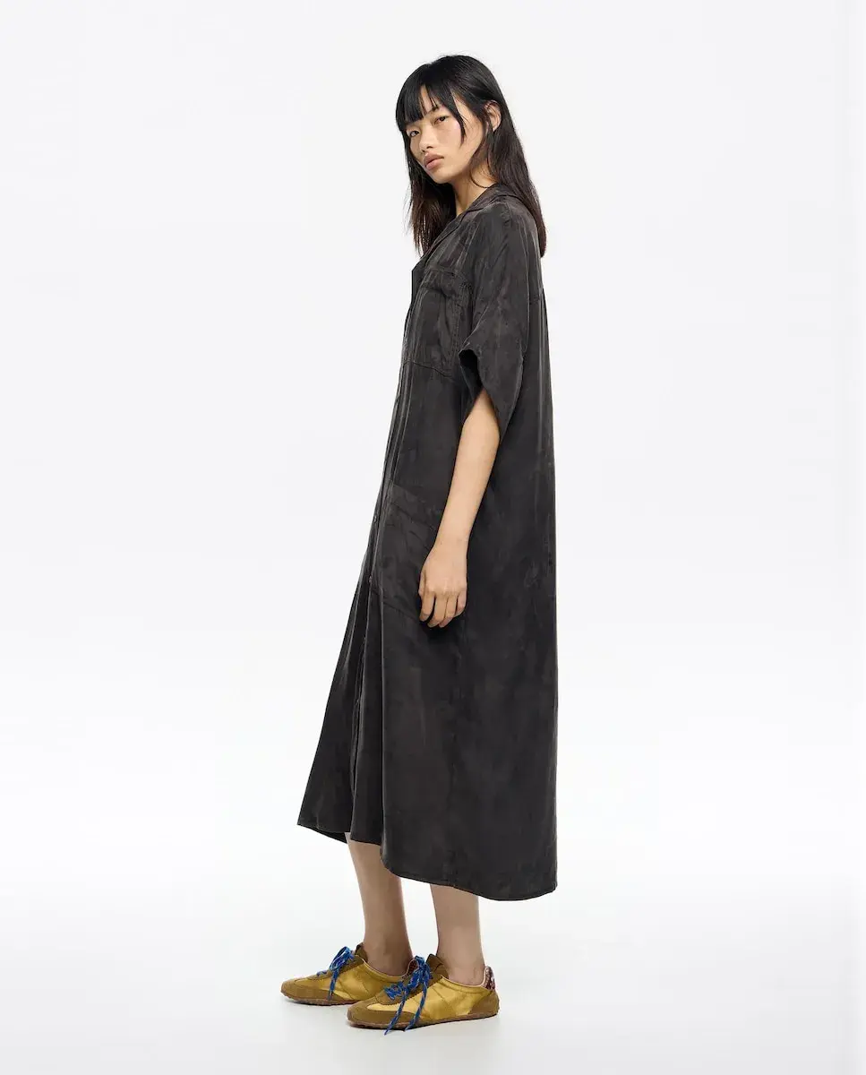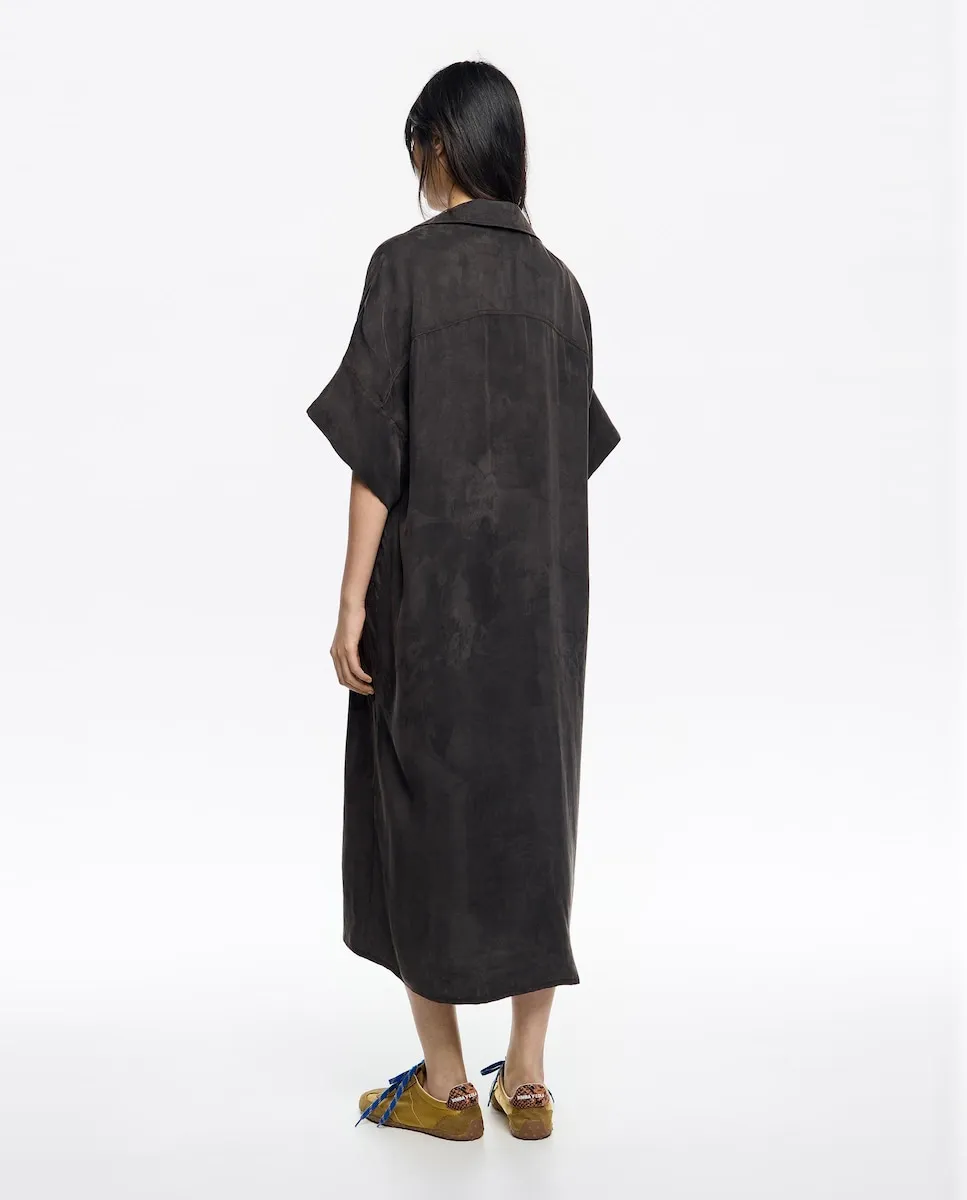 Откройте для себя элегантность длинного платья-рубашки от BIMBA Y LOLA - универсальной вещи, сочетающей стиль и комфорт. Сшитое из мягкой смеси лиоцелла и вискозы, это платье имеет гладкий дизайн и свободный силуэт, подходящий для любого случая. Его короткие рукава и длина, выгодно подчеркивающая фигуру, делают его идеальным выбором, чтобы выглядеть изысканно в любое время. Идеально сочетается с вашими любимыми аксессуарами.