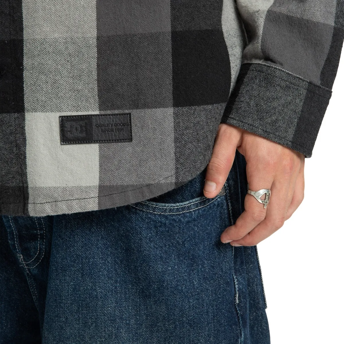 Мужская рубашка с длинными рукавами и капюшоном. Особенности включают: Ткань: хлопковая фланель на корпусе, Капюшон с внутренней частью из хлопкового флиса, Крой: классический, Застежка/воротник: на пуговицах, Дизайн с капюшоном, Два передних кармана с клапанами, Капюшон со шнурками, Полиуретановая нашивка DC на нижнем крае подгиба и детали DC.